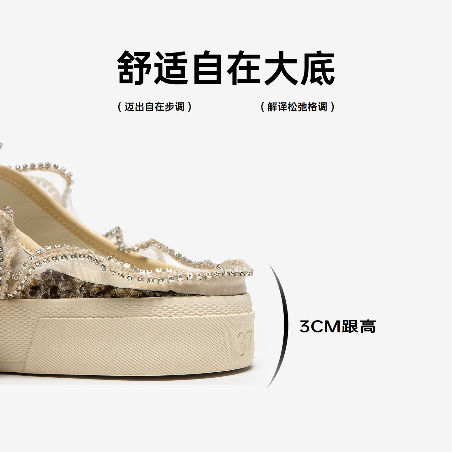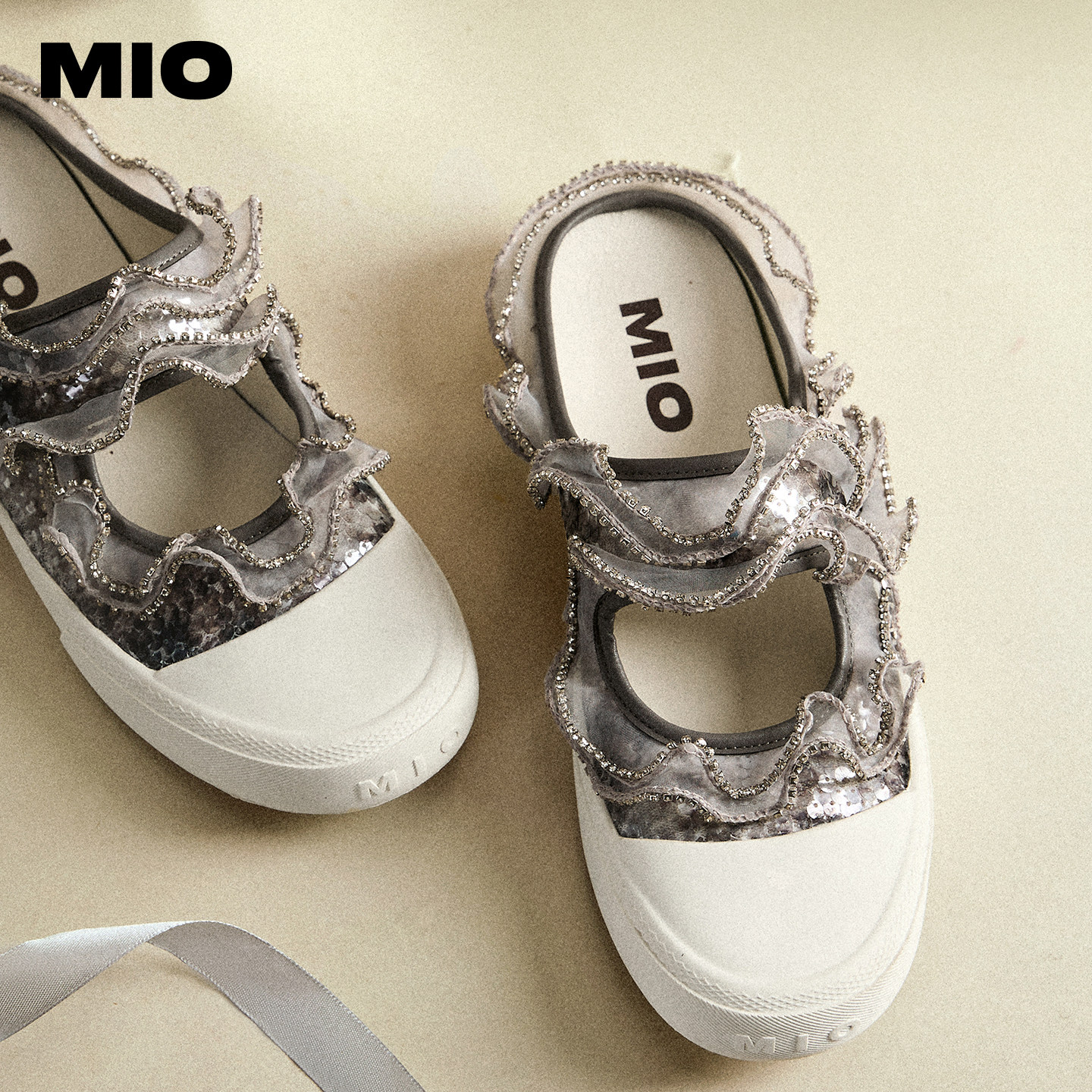 MIO米奥女鞋拖鞋2026夏季新款亮片木耳纱边板鞋运动包头拖凉鞋