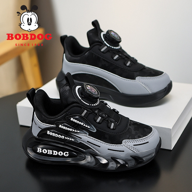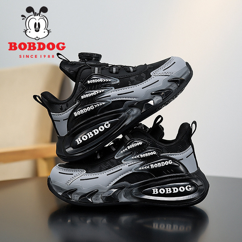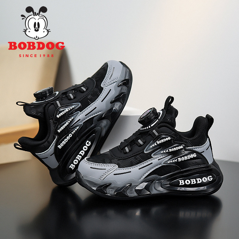 巴布豆大童运动鞋春秋季新款男童跑步鞋软底防滑男孩鞋子皮面防水