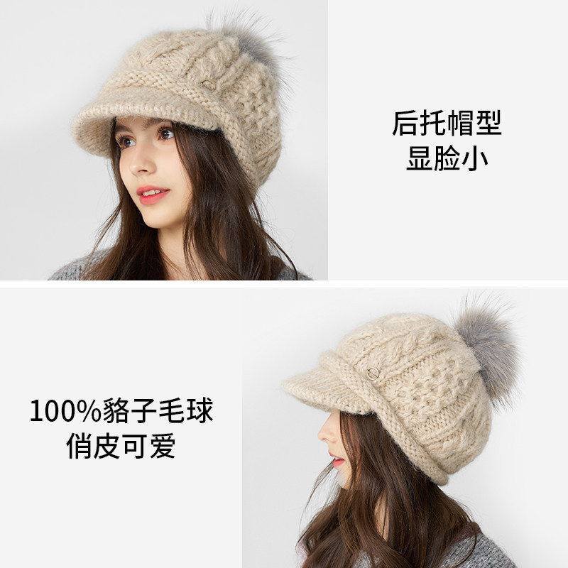 卡蒙帽子女士冬可爱毛球针织帽加厚保暖贝雷帽防风防寒护耳毛线帽