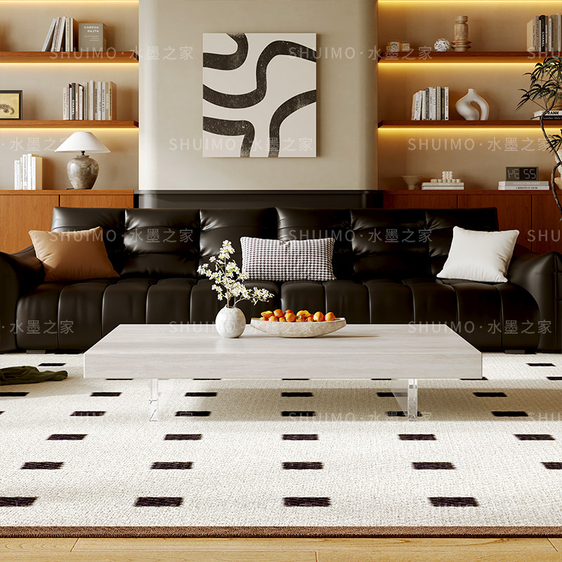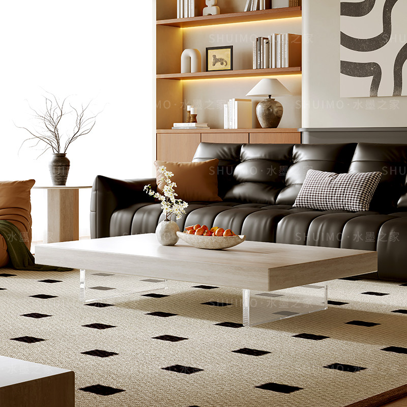 德利丰客厅洞石岩板茶几居家用设计师亚克力悬浮小户型长方形茶几