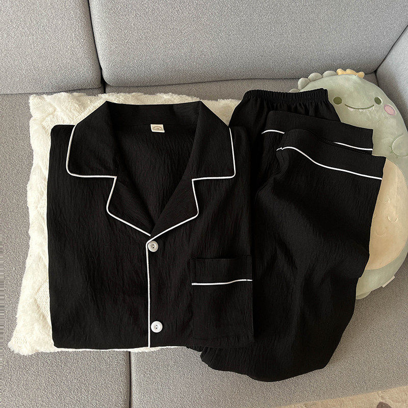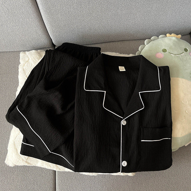 红豆云朵纯棉纱男士睡衣春秋款长袖简约黑色高级感外穿家居服夏季