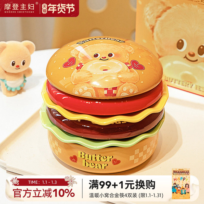 【摩登主妇&黄油小熊】汉堡包餐具套装碗碟家用盘子餐盘生日礼物