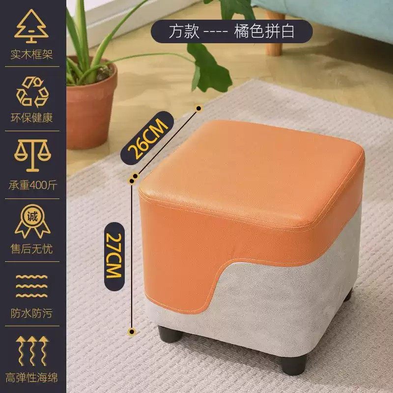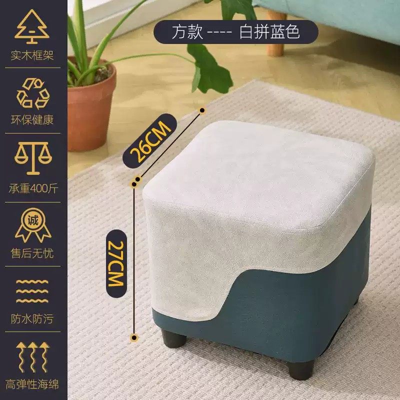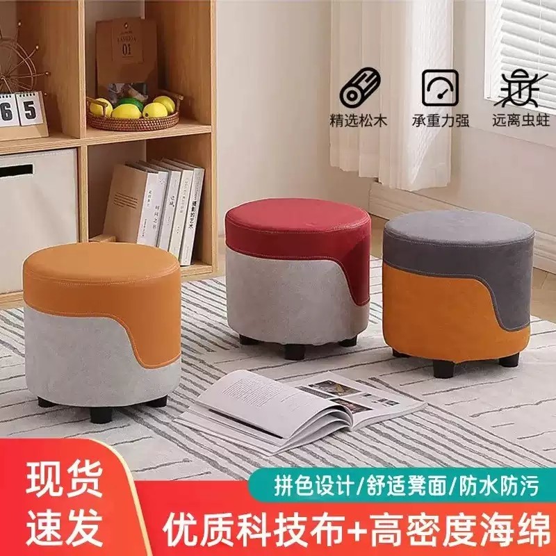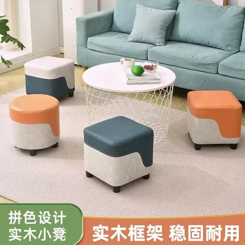 科技布家用小凳子客厅小矮凳茶几凳子网红拼色换鞋凳皮墩圆凳方凳