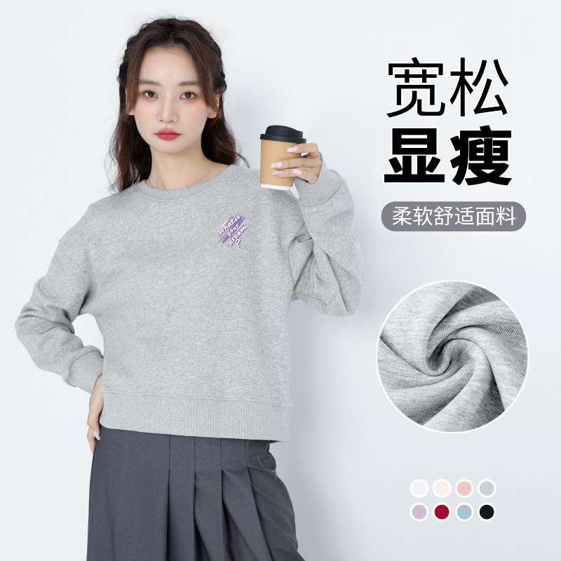 短款圆领卫衣 宽松版型 显瘦拉长比例