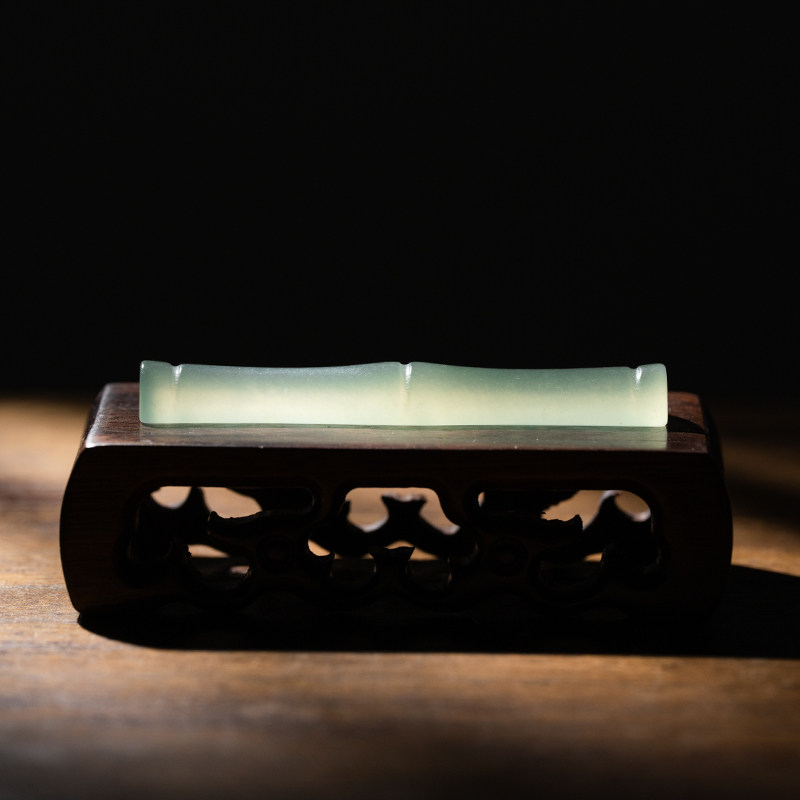 天然岫玉竹节笔搁 毛笔专用创意文房笔架