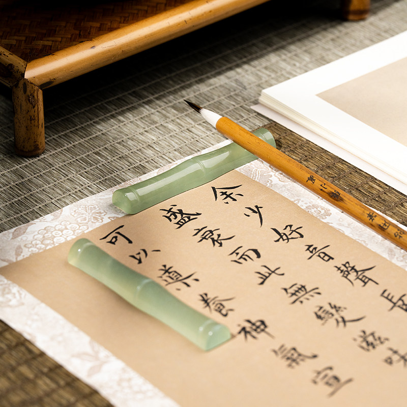 张小凤岫玉竹节笔搁创意书法国画专用笔天然原石手工打磨镇纸毛笔笔架桌面文房四宝雅器玉石中式摆件小楷礼物