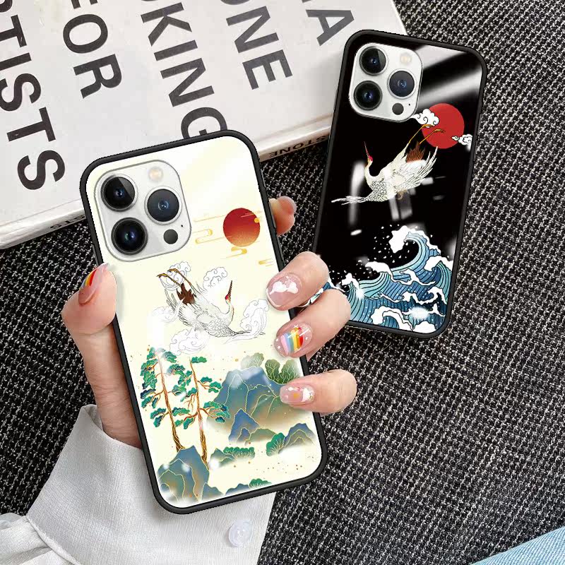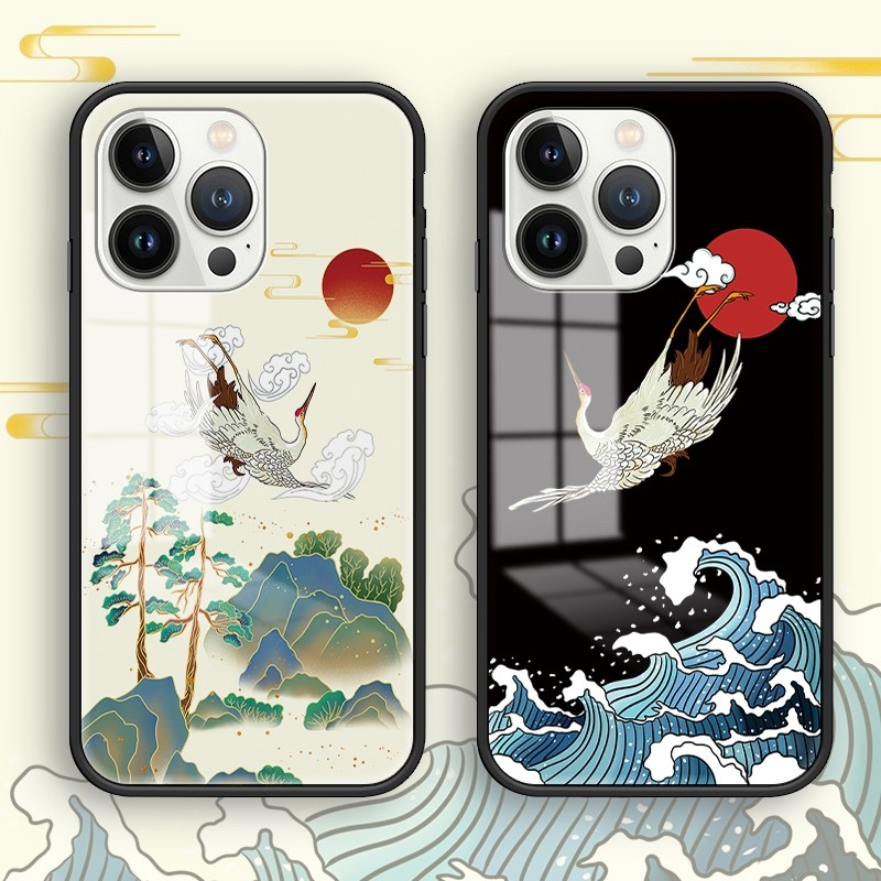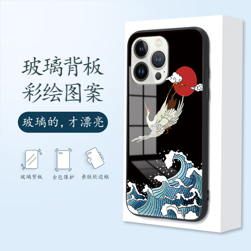 适用苹果14promax手机壳新款高端iPhone14玻璃全包防摔14max保护套男个性创意女14pro中国风复古飞鹤国潮plus