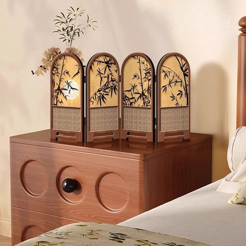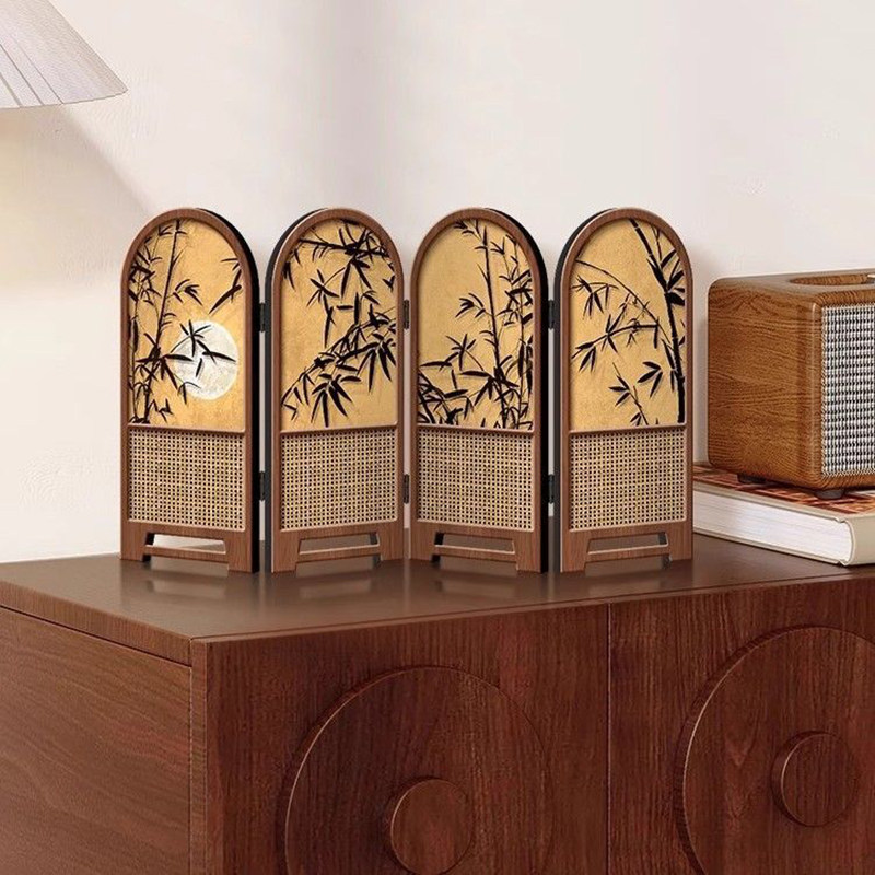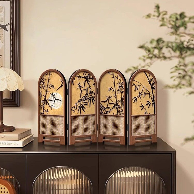 小屏风摆件中古风竹子新款桌面摆台画折叠折屏高级感电视柜装饰画