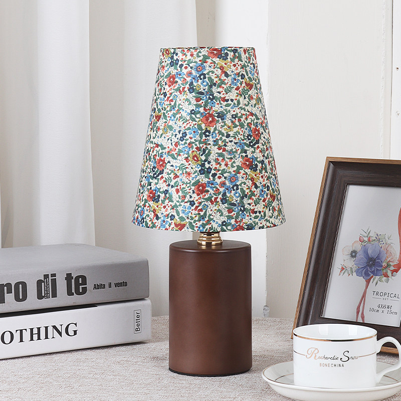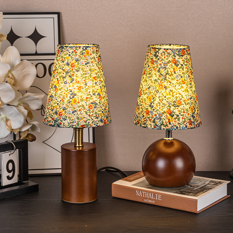 中古复古碎花陶瓷夜灯卧室睡眠装饰书房高颜值实木床头氛围台灯