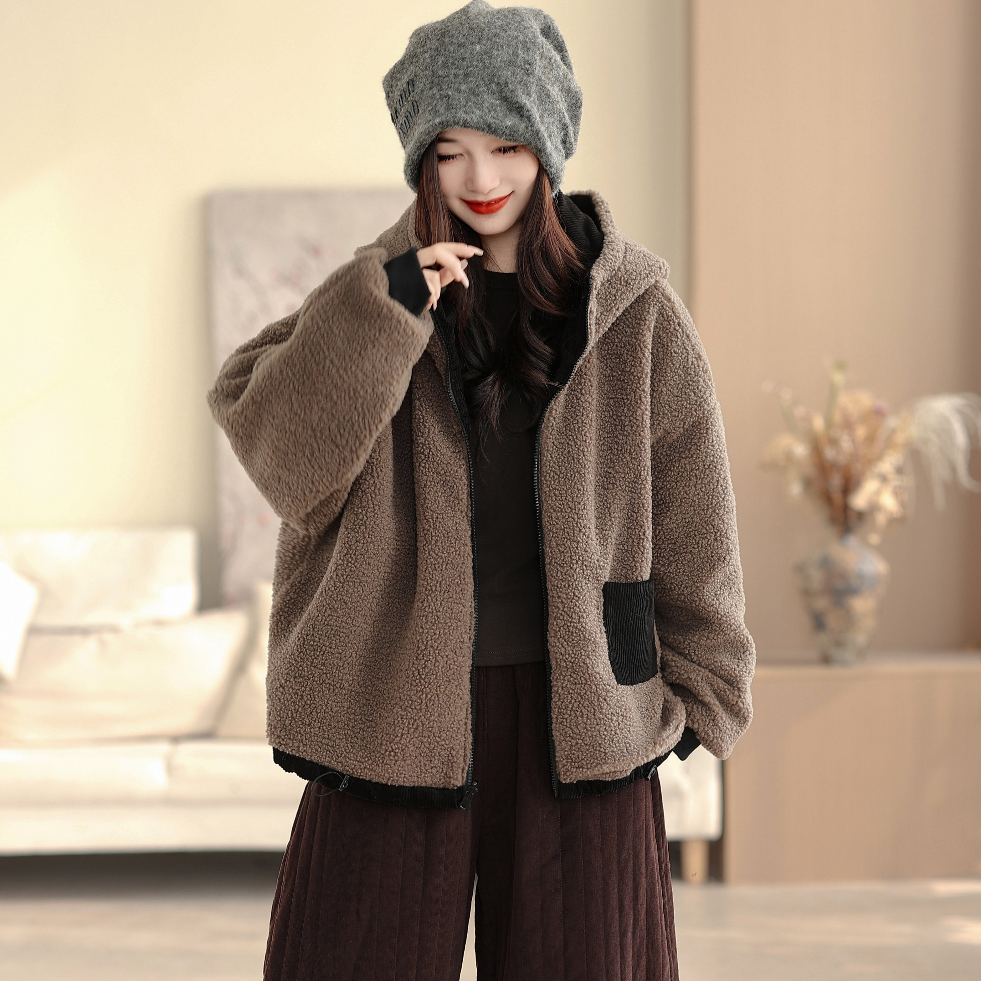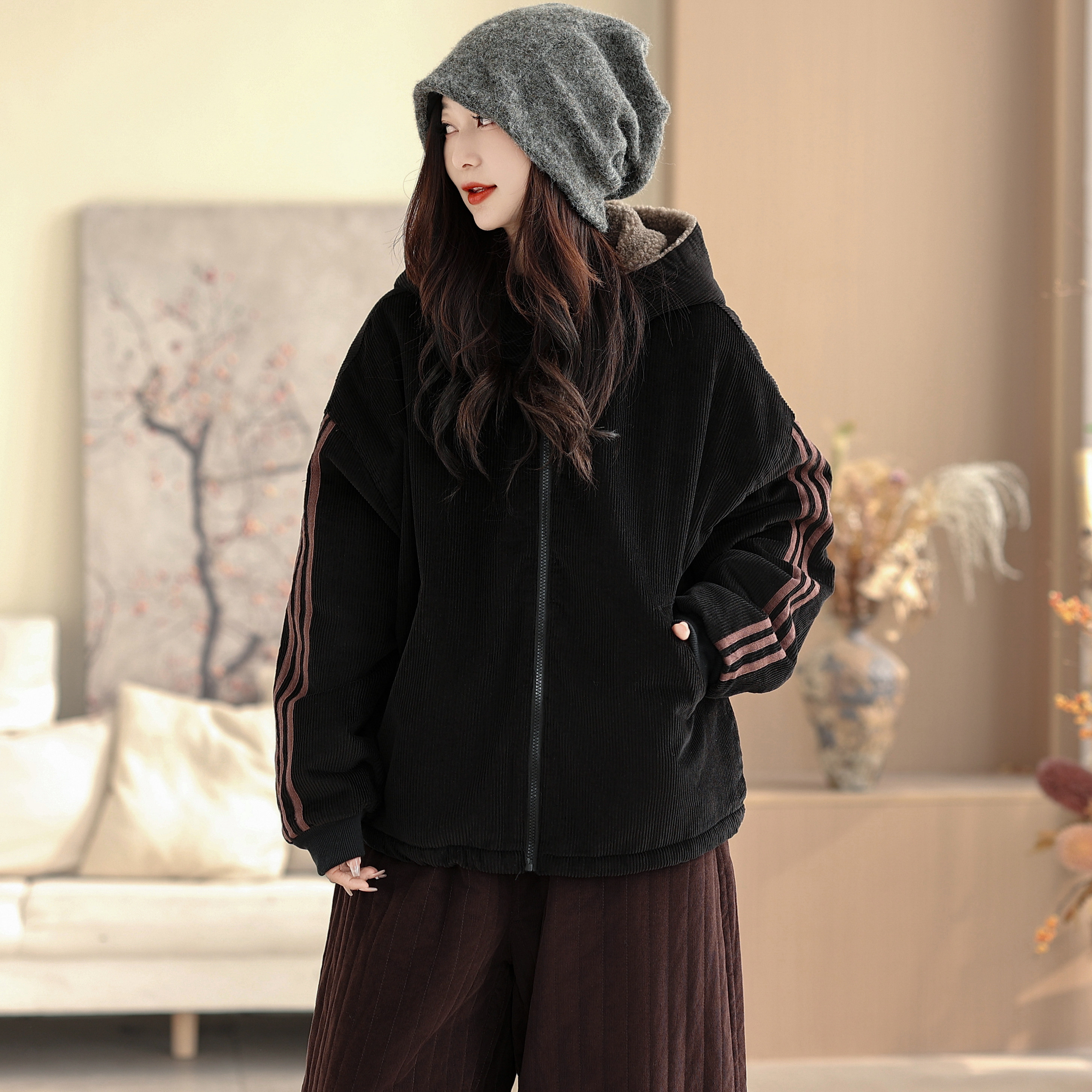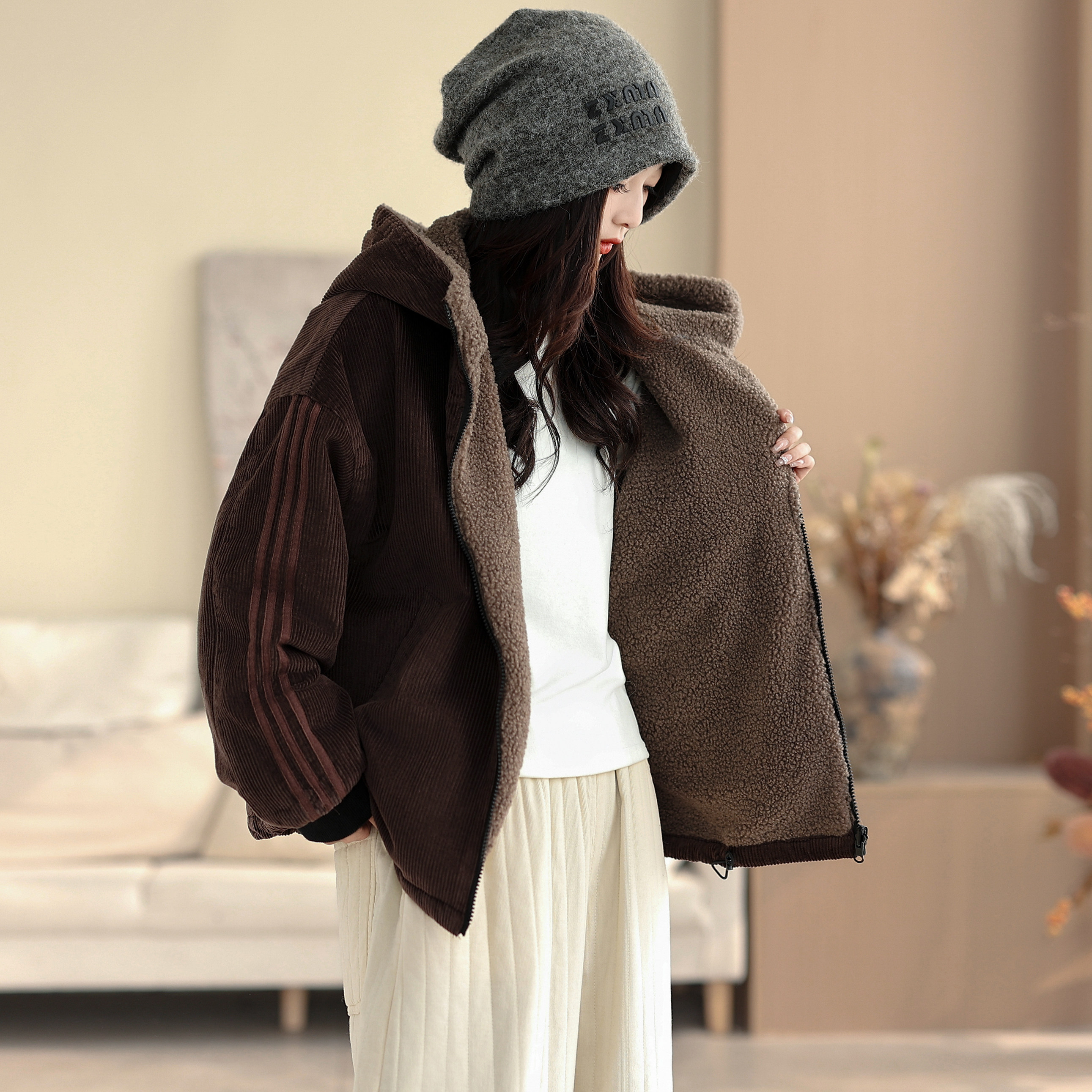 咖咪羽灯芯绒棉服女秋冬双面穿新款女士帽子宽松纯色休闲流行女装