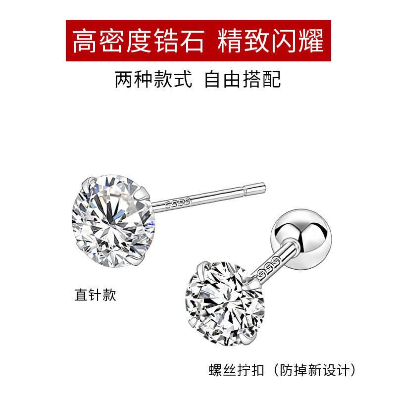 999纯银养耳洞钻石耳钉女养耳棒螺丝拧扣耳骨钉防堵针小耳环耳饰