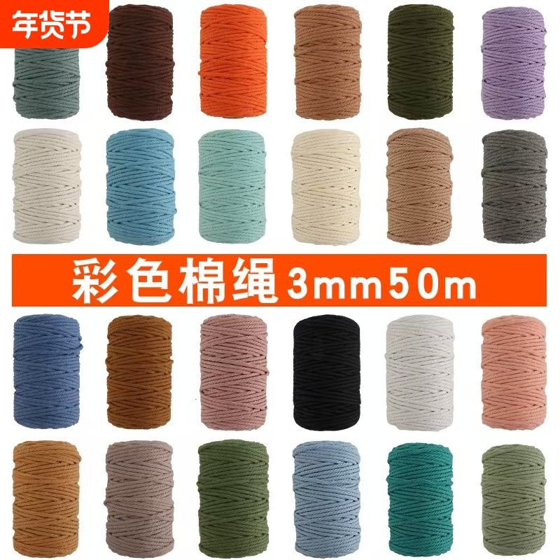 3mm50米彩色棉绳线手工diy捆绑编织包包缠绕装饰线挂毯配件材料