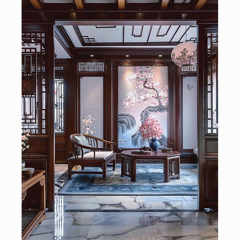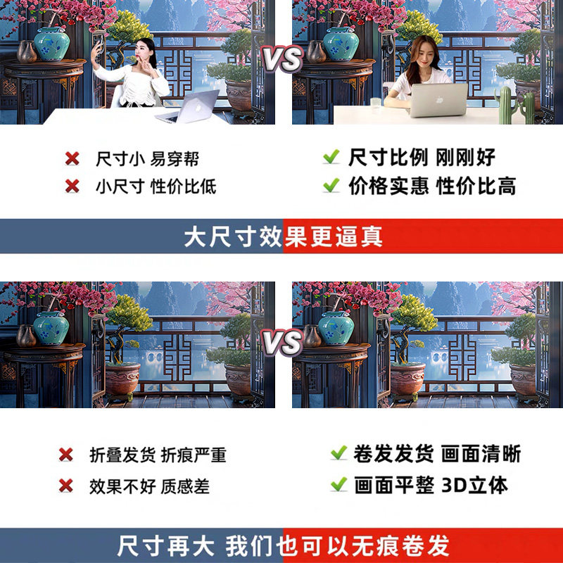 新中式古风直播背景布3d立体高级感网红拍照区壁纸画直播间场景布置男女主播抖音快手拍视频段子可移动氛围感