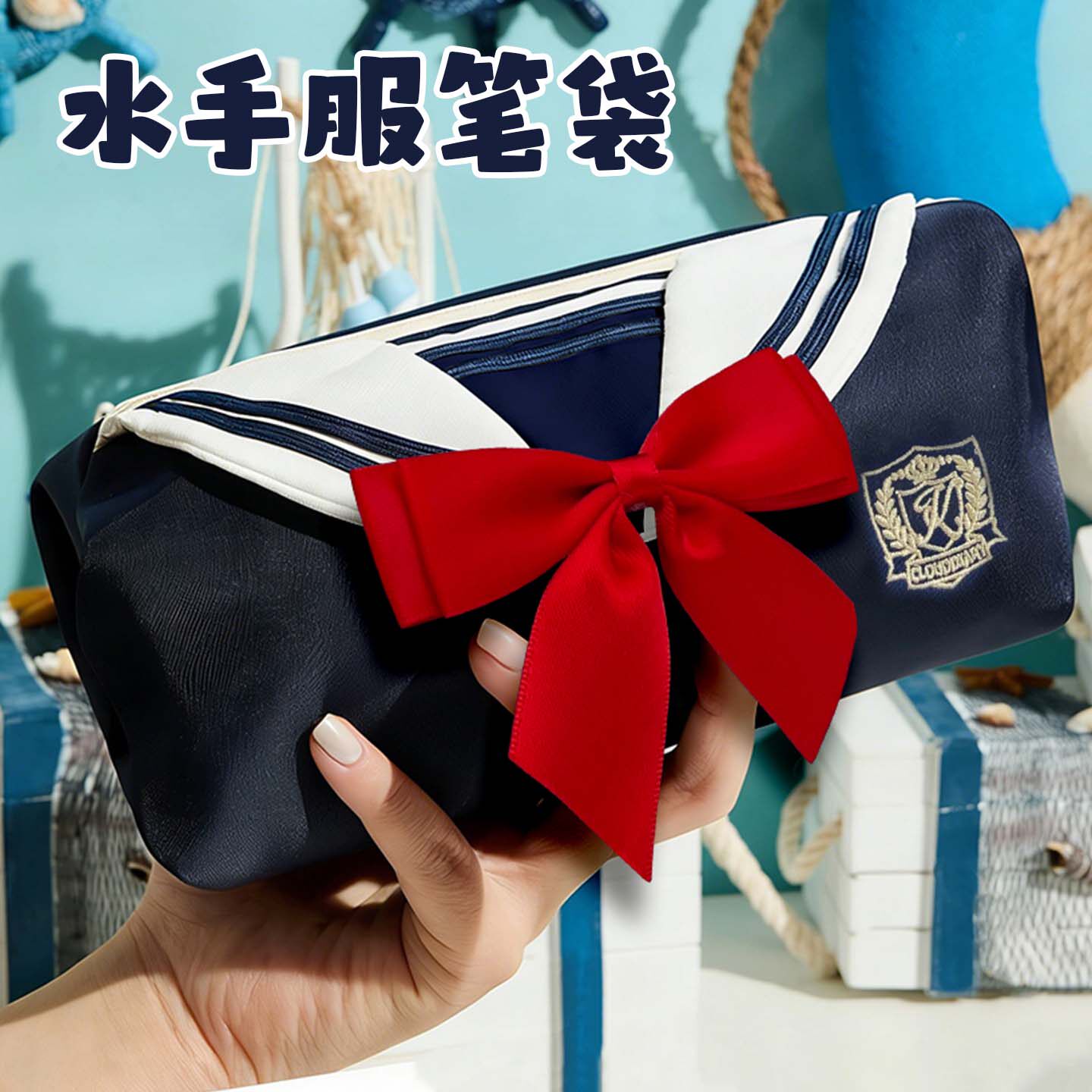 日系JK制服水手服笔袋学院风蝴蝶结装饰文具盒学生笔袋高颜值笔袋