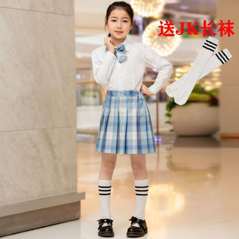 女童jk制服套装2025新款学院风衬衫长袖中大童百褶短裙两件套洋气