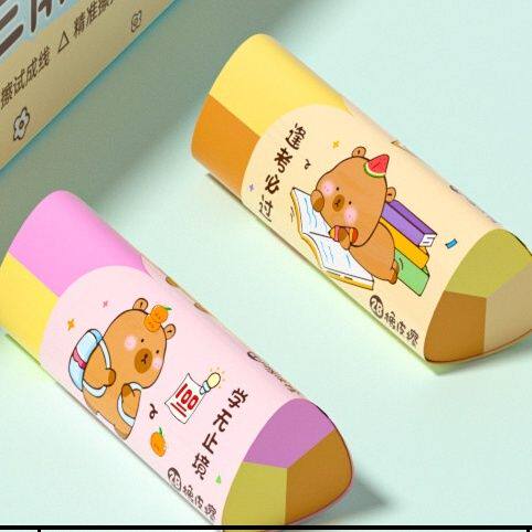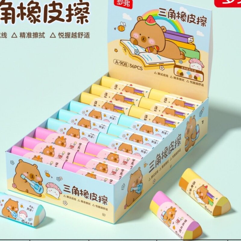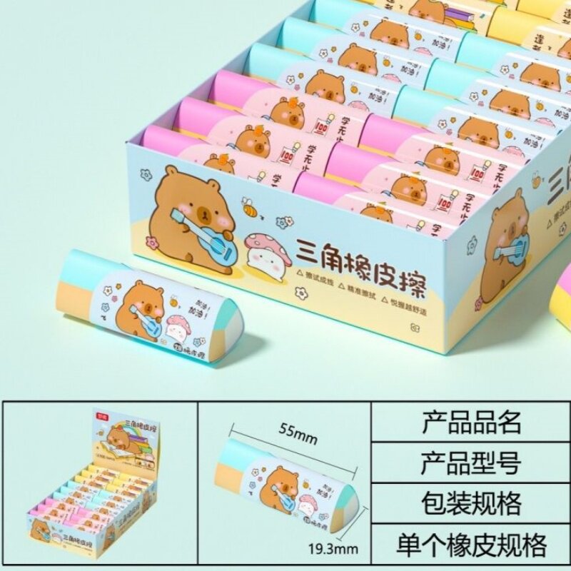 水豚彩色三角橡皮擦小学生专用擦试成线干净不留痕少屑橡皮长条
