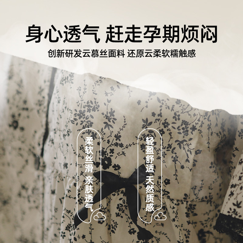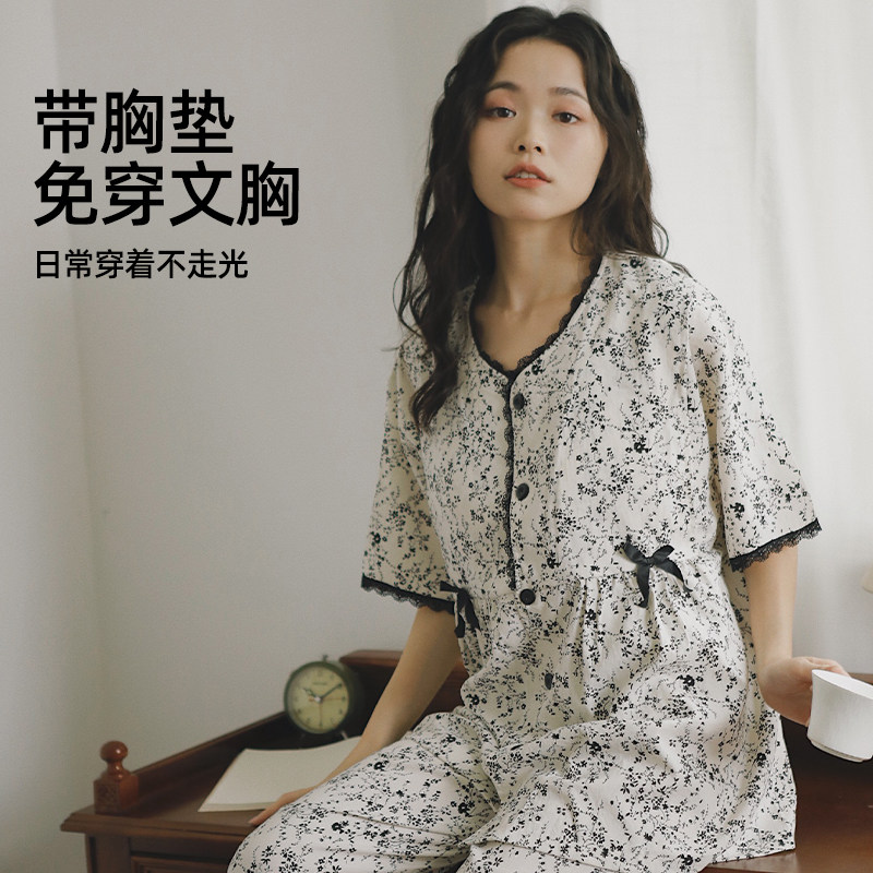 凉感莫代尔带胸垫月子服春夏季薄款产前产后春秋孕妇哺乳喂奶睡衣
