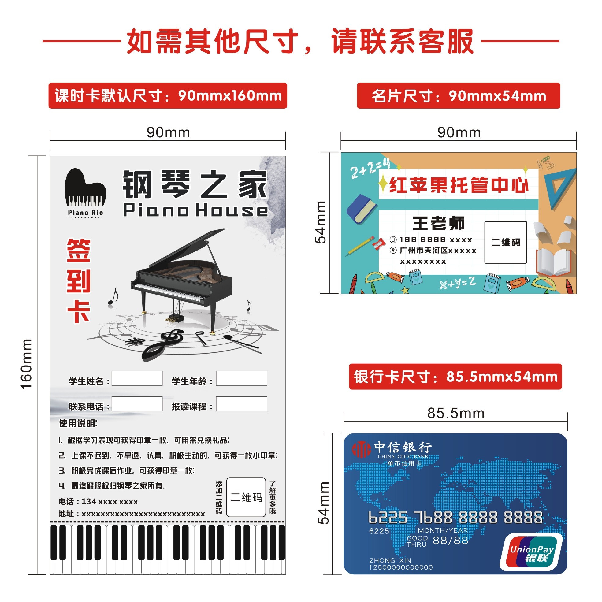 双面个性订制少儿钢琴班课时卡专业设计新款创意乐器盖章签到卡片