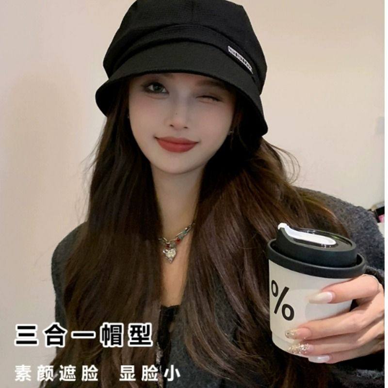 三合一渔夫帽女高级感大头围秋冬八角贝雷帽日系遮脸堆堆帽子防风