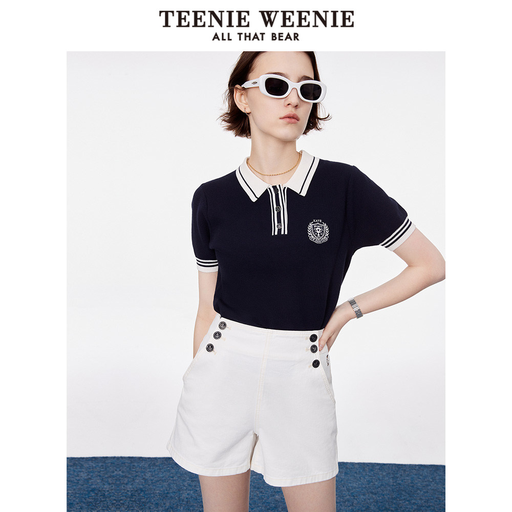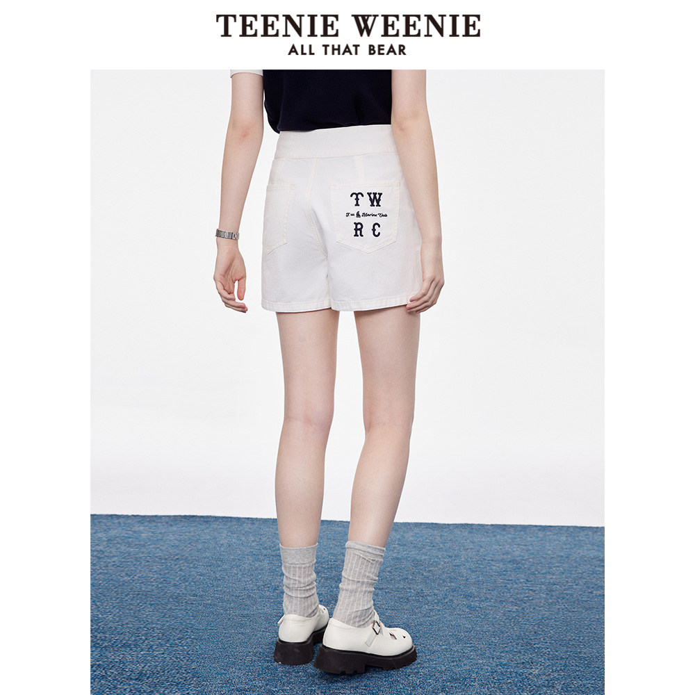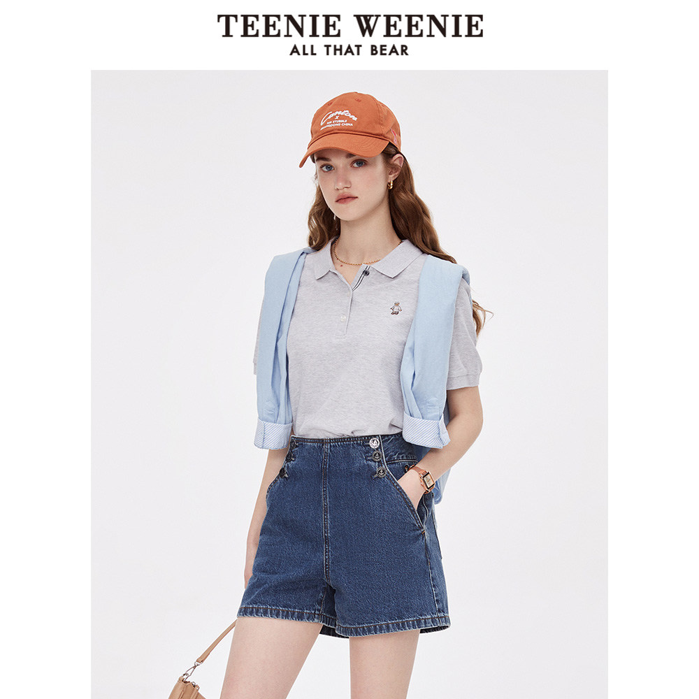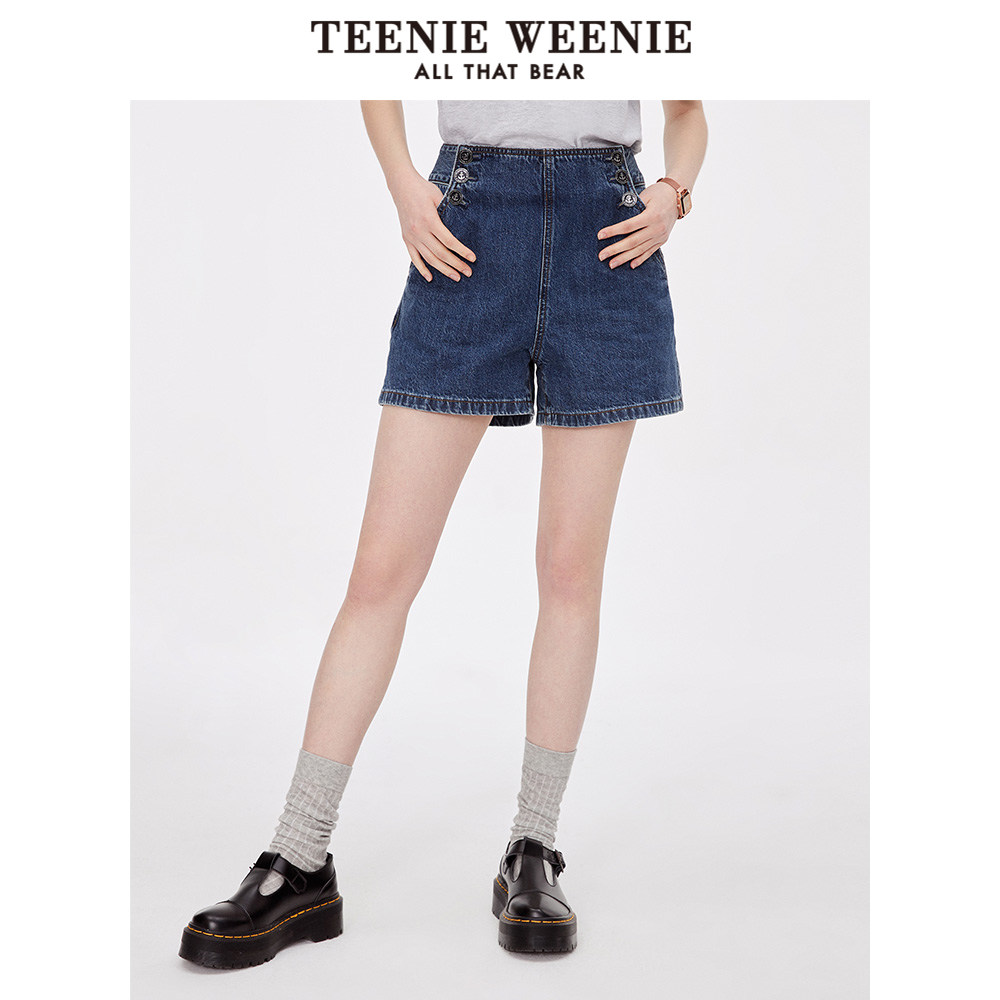 TeenieWeenie小熊奥莱夏季新款复古双纽扣休闲牛仔短裤子女