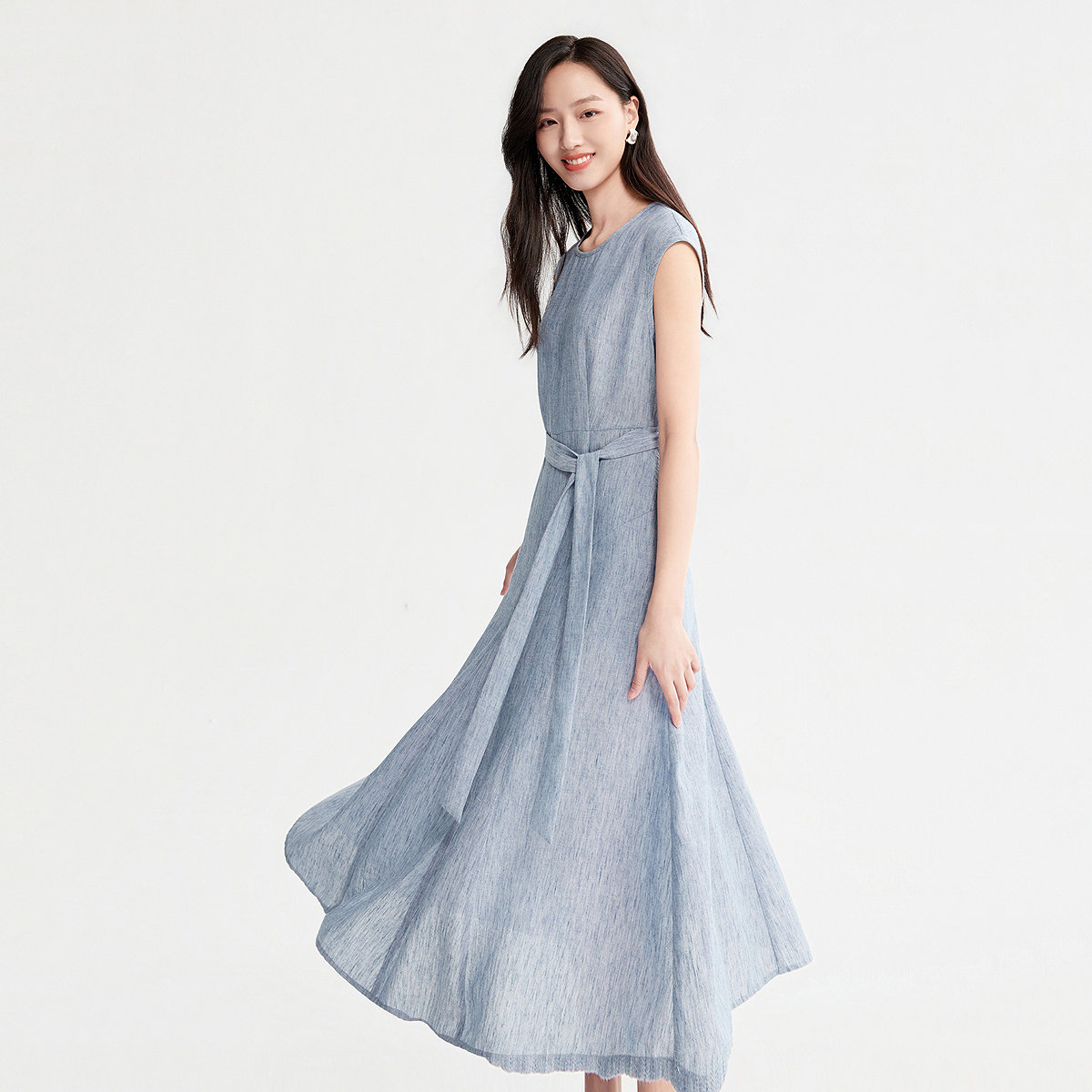 FINITY菲妮迪连衣裙2026年夏季新款简约系带领优雅通勤短袖长裙女