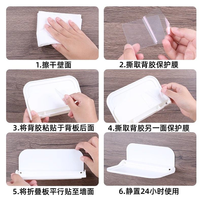 可折叠墙上置物架卫生间浴室宿舍床头边免打孔壁挂式收纳架壁挂架