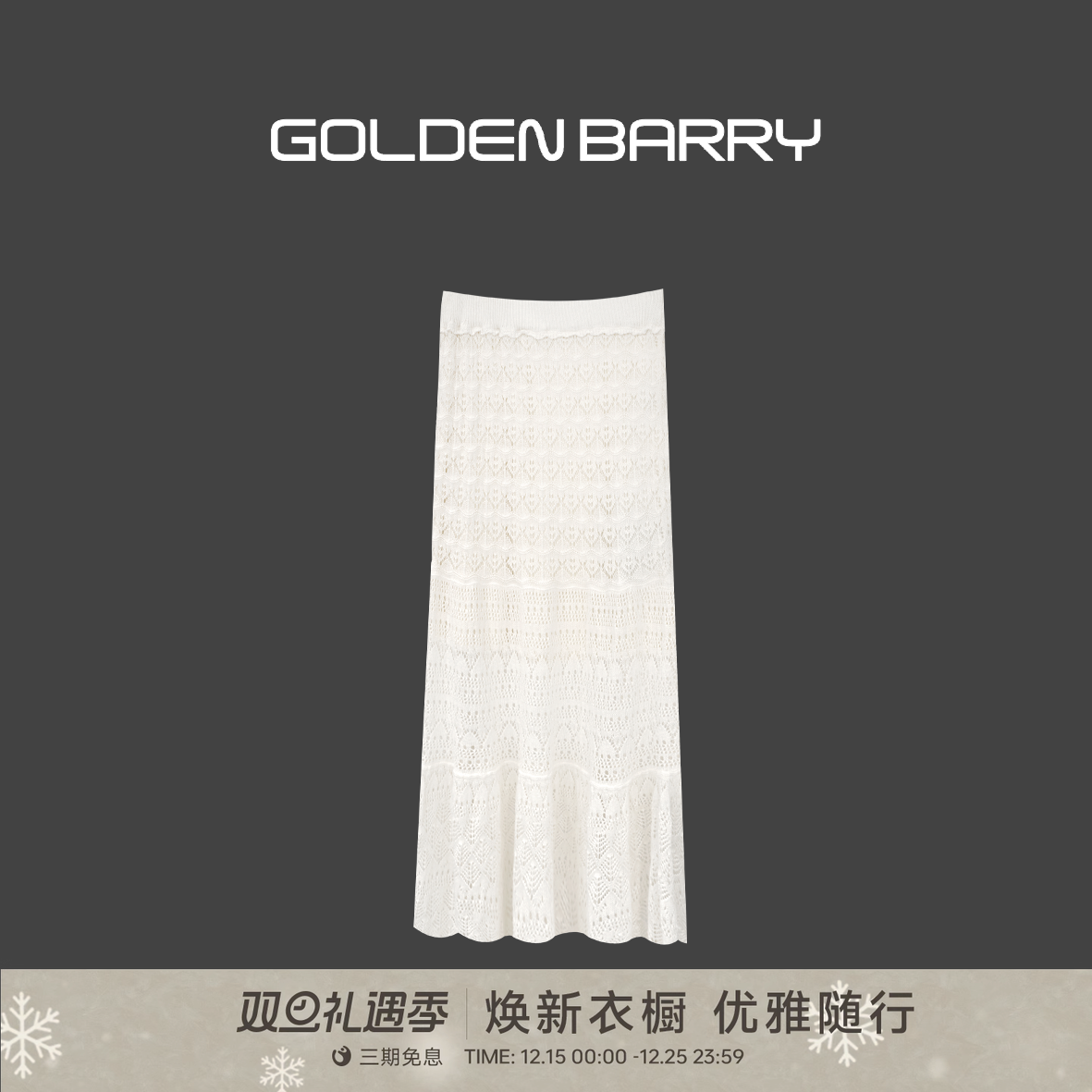 GOLDEN BARRY金和百瑞高级感法式度假风镂空钩花A摆半身裙310135