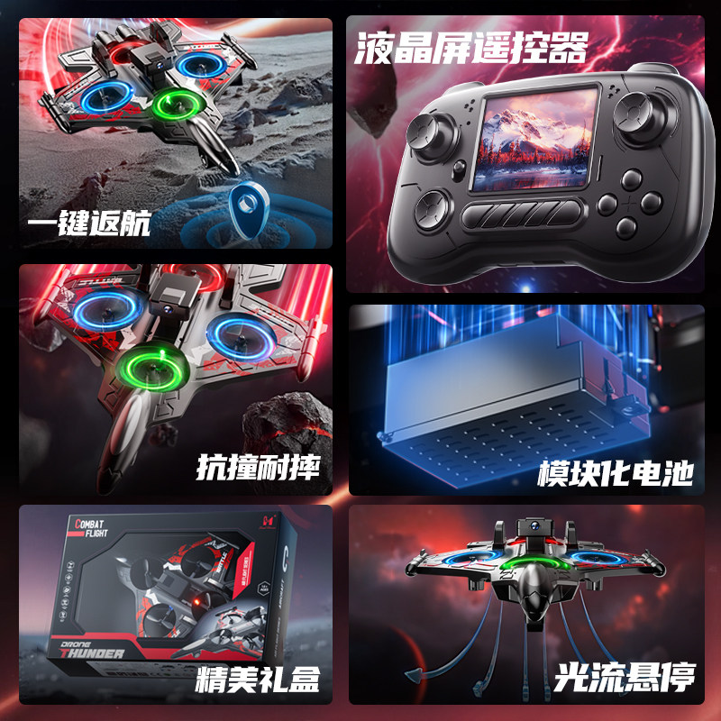 五年玩坏换新泡沫无人机新款男孩遥控飞机自带航模泡沫儿童玩具屏战斗机飞机航拍无人机小学生毕业礼物特技