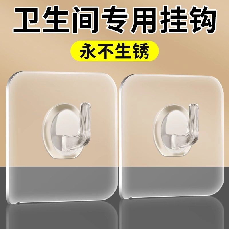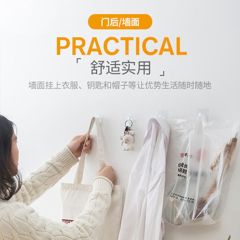 透明连排挂钩六连挂强力粘胶不掉落收纳壁挂无痕免打孔门后粘钩