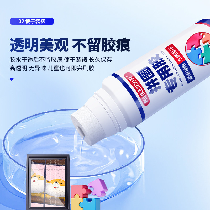 艾力克拼图专用胶水 成人儿童学生1000片粘纸木质透明保护快干胶裱框固定名画专业胶 环保安全手工胶水120ml