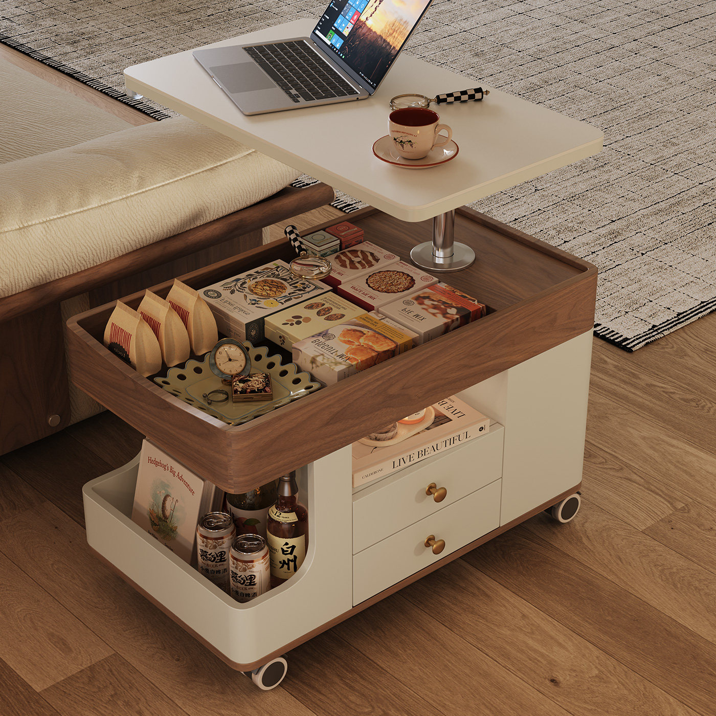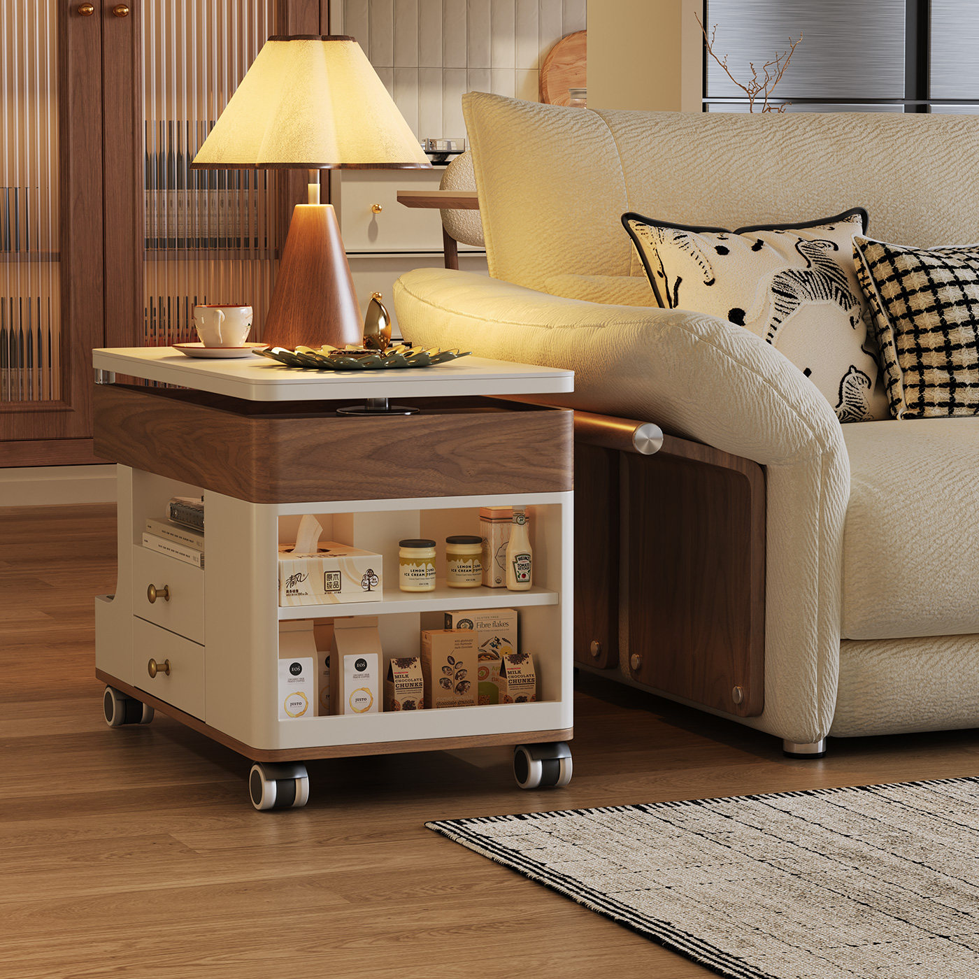 现代简约可升降茶几客厅沙发边柜可折叠家用小户型移动推车多功能