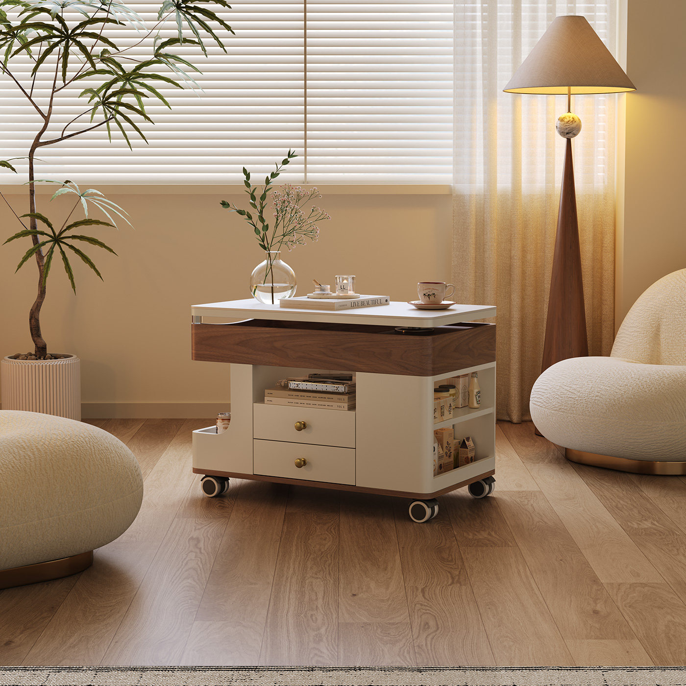 可移动茶几小推车客厅家用小户型2025新款多功能储物升降岩板茶几