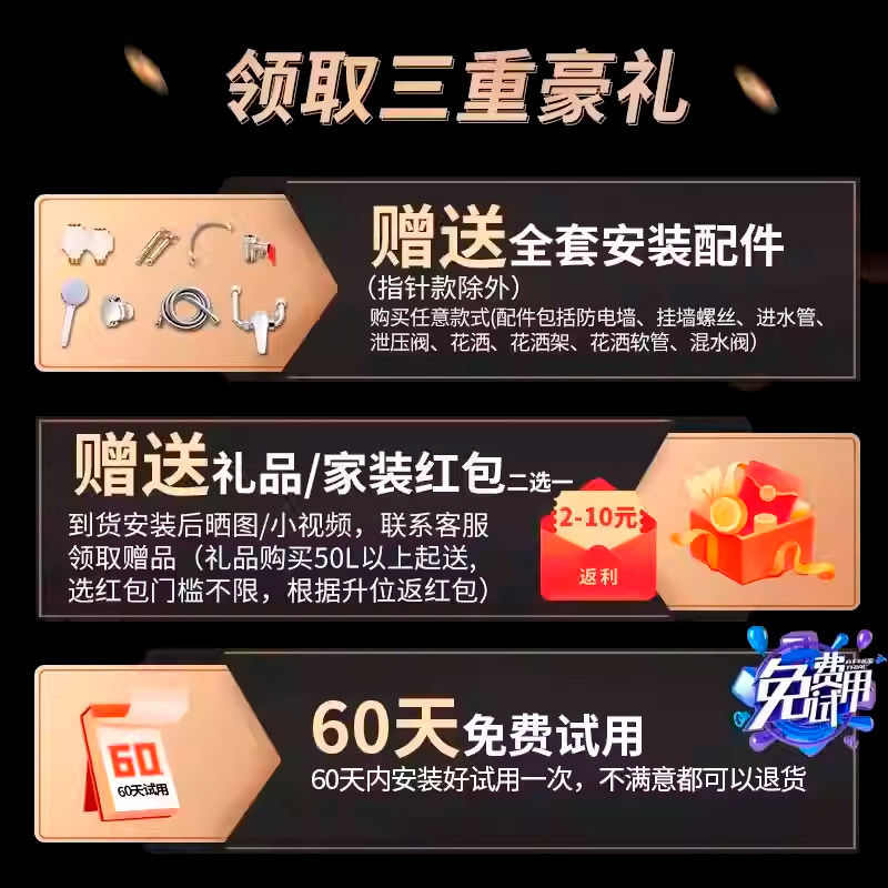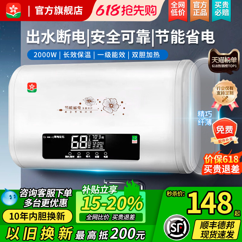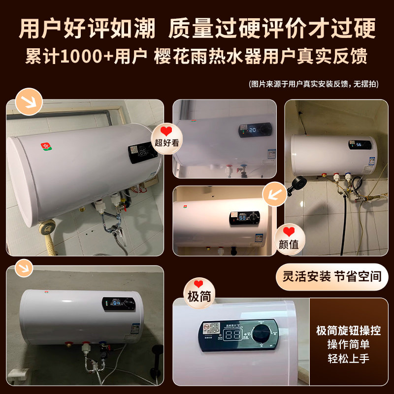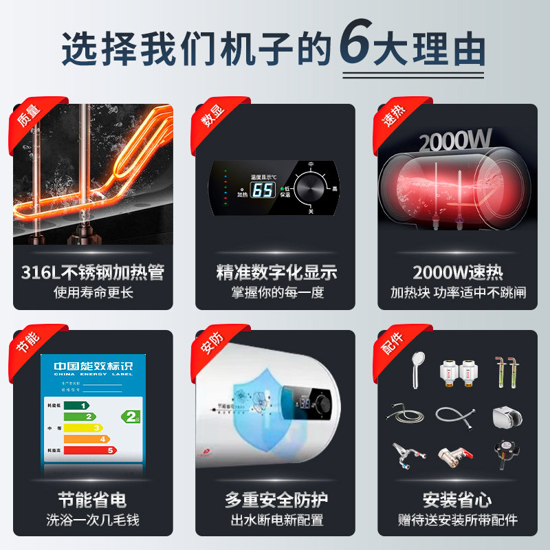 电热水器家用储水式小型60升卫生间洗澡扁桶80升速热数显出水节能