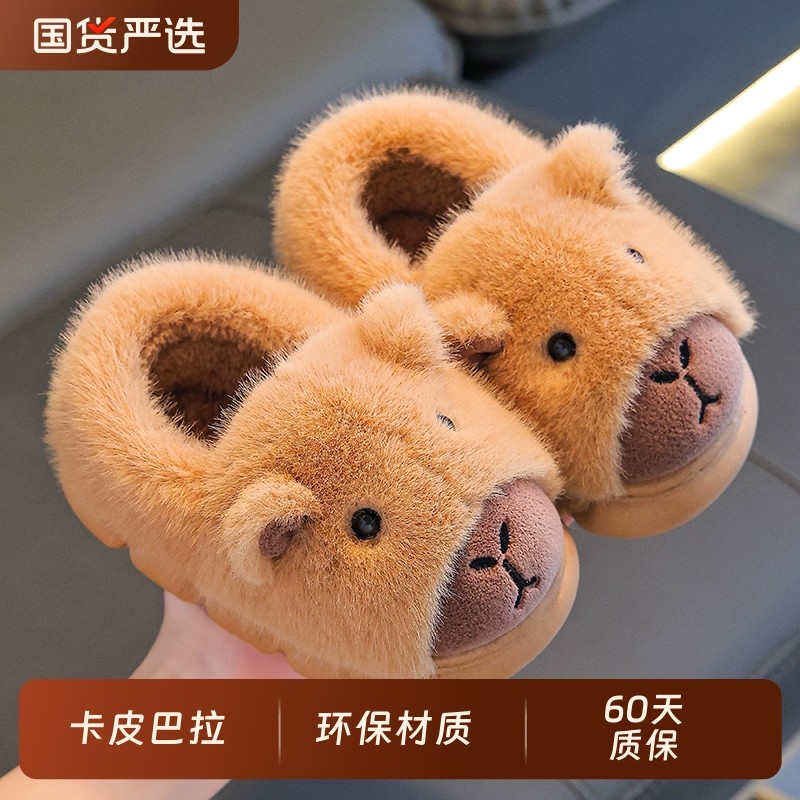 卡皮巴拉儿童棉拖鞋男童冬季卡通可爱防滑室内居家宝宝毛毛拖鞋