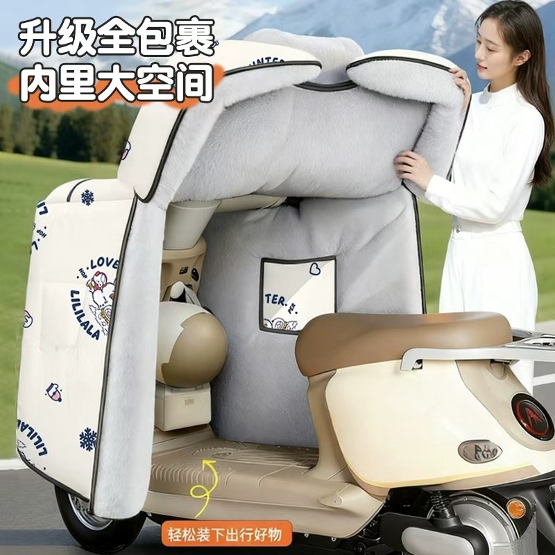 电动车挡风被冬季全包加绒加厚防风防水罩25新款三轮车亲子款双人