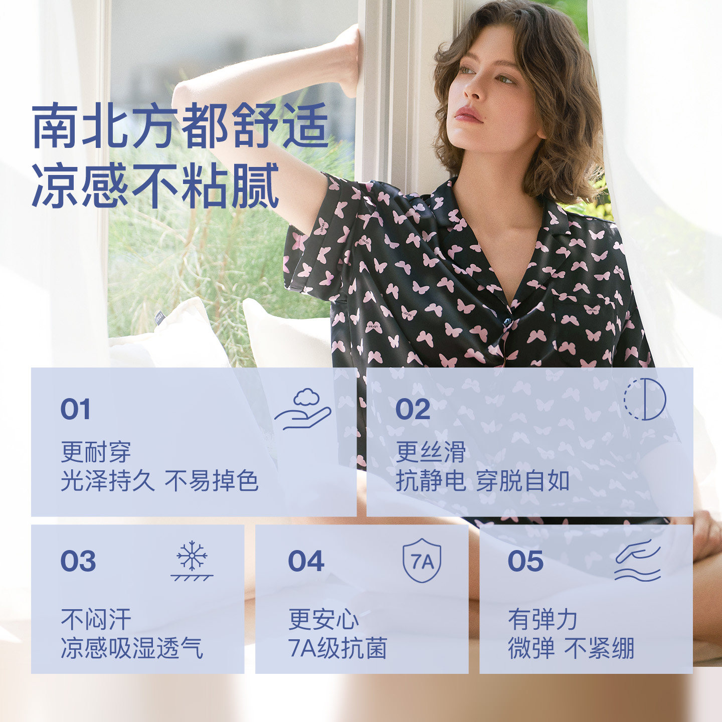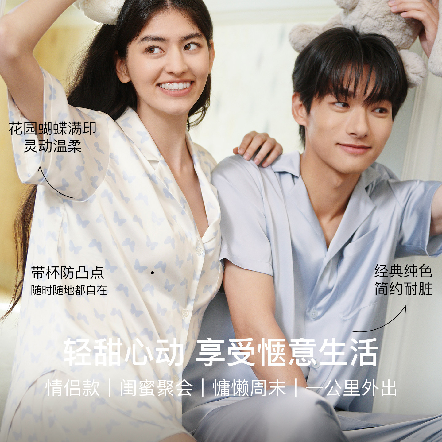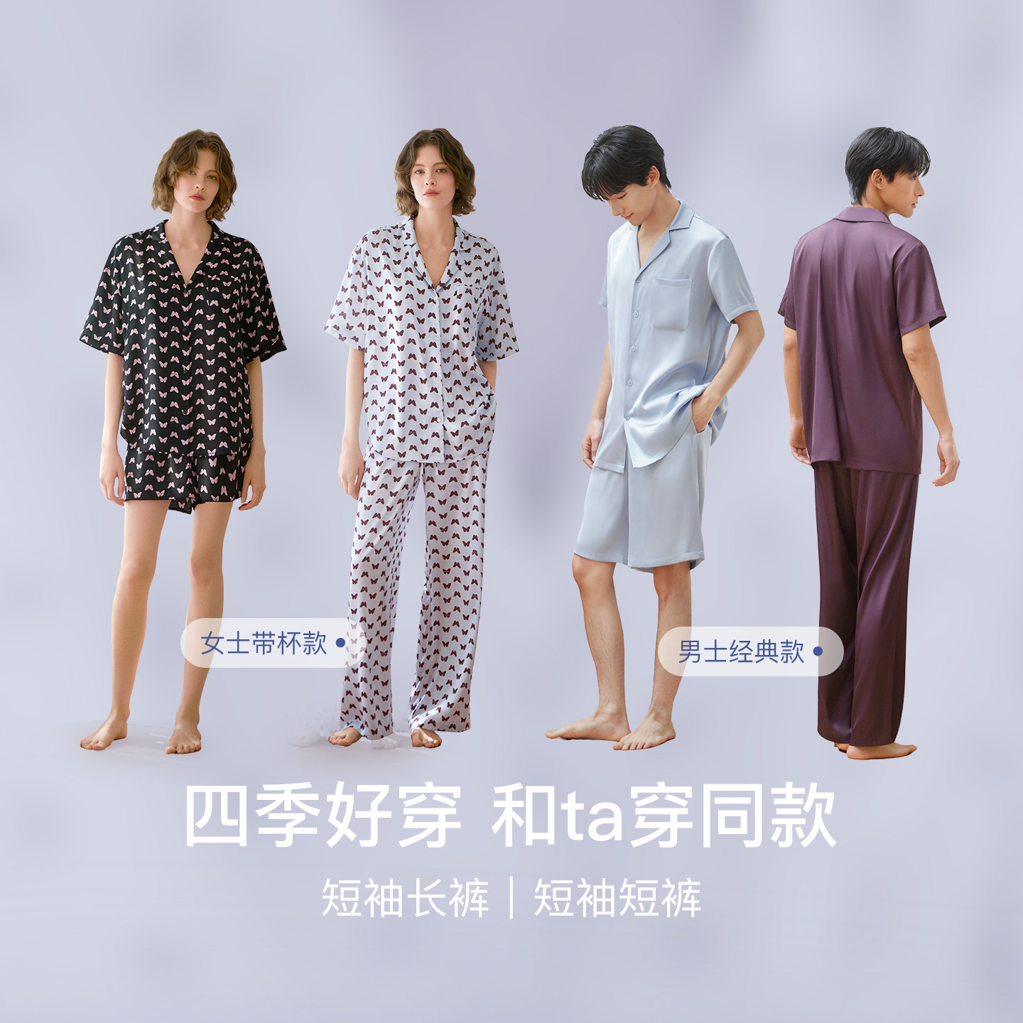 ubras流光家居服蝴蝶印花女款睡衣套装男士缎面2026年新款春夏季