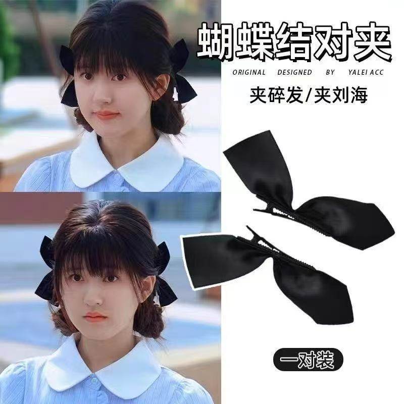 露思同款饰品蝴蝶结发夹发卡抽象高级感小夹子女发饰黑碎发刘海