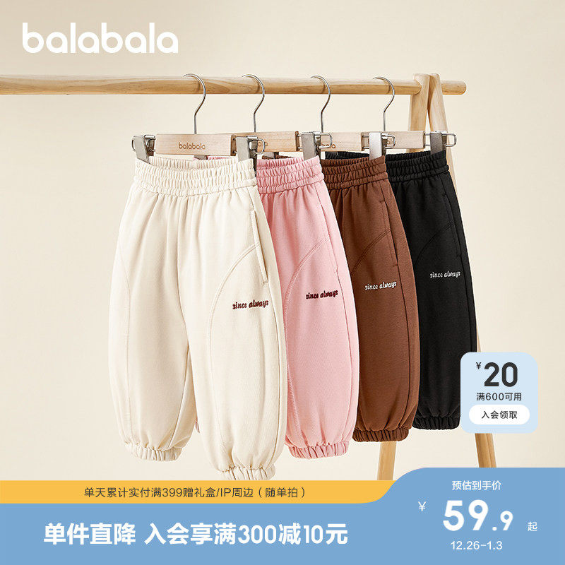 巴拉巴拉宝宝儿童长裤男童女童束脚裤秋冬宽松裤子休闲裤洋气百搭