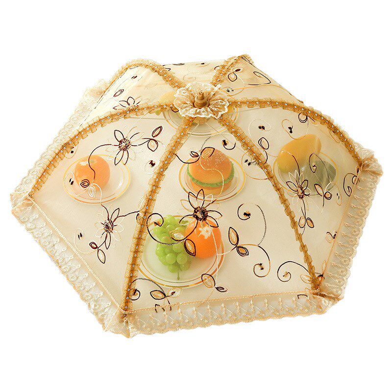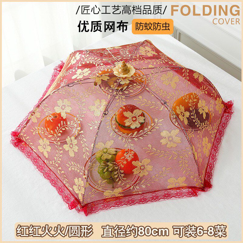 欧式家用菜罩可折叠圆形餐桌罩厨房可水洗防蝇防尘收缩盖菜伞套装