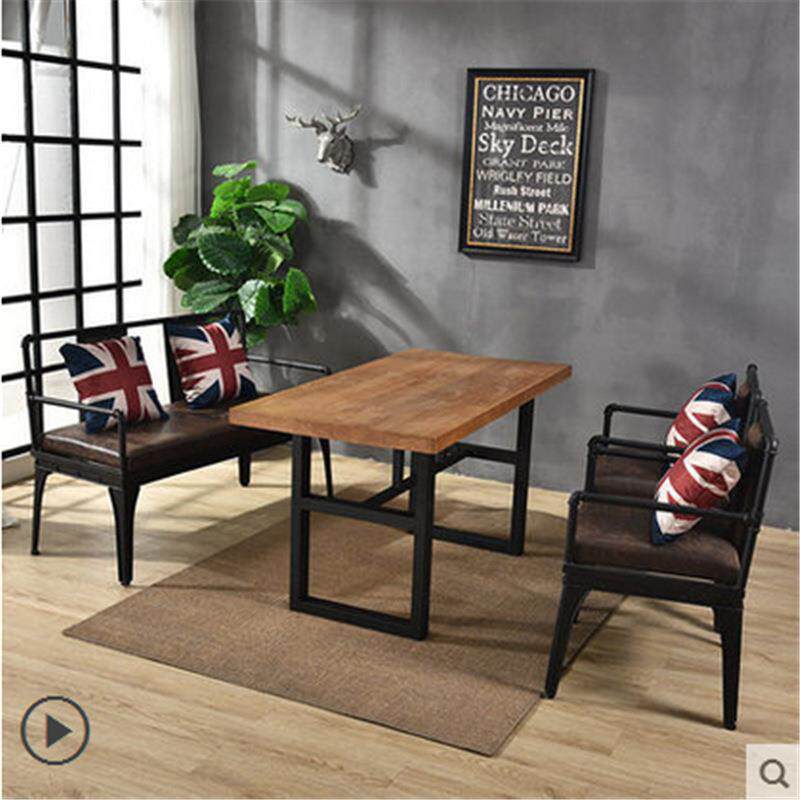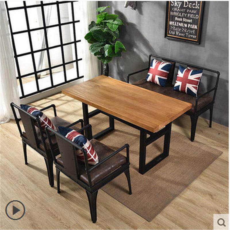 欧式实木餐桌餐厅铁艺餐桌椅简约卡座沙发桌椅组合职员办公会议桌