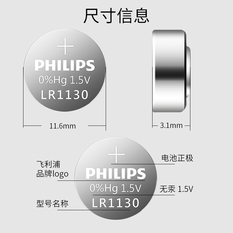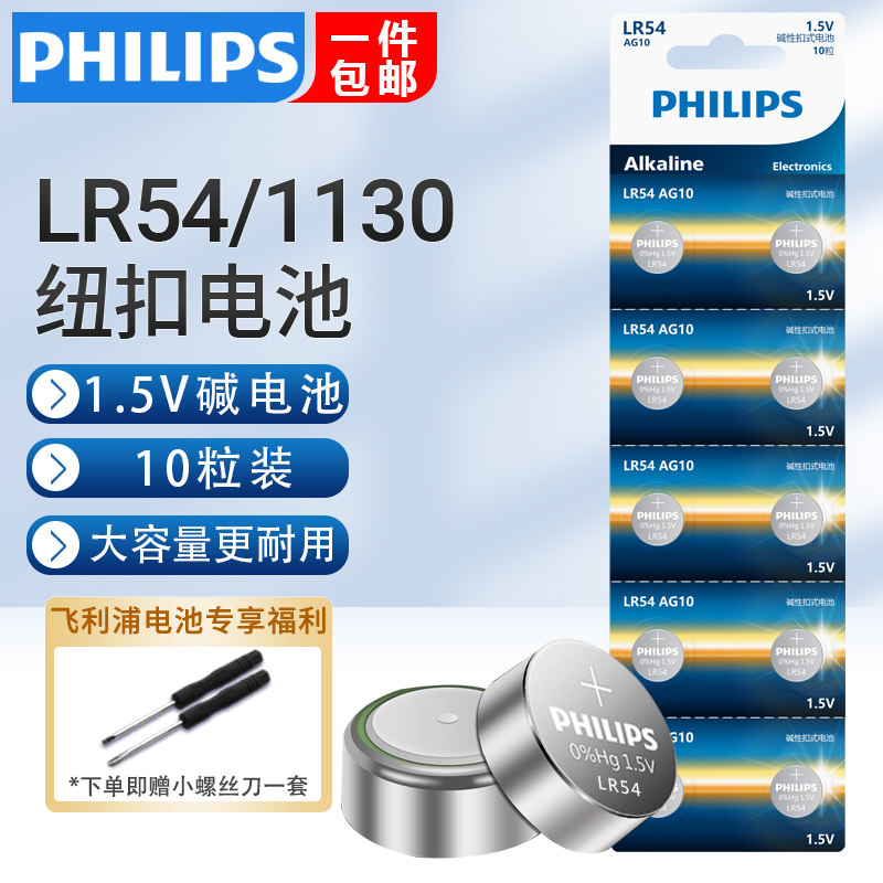 飞利浦lr1130纽扣电池原装l1131钮扣1.5v ag10sr1130swLR54 AG10 389aLR54适用卡西欧手表计算器等