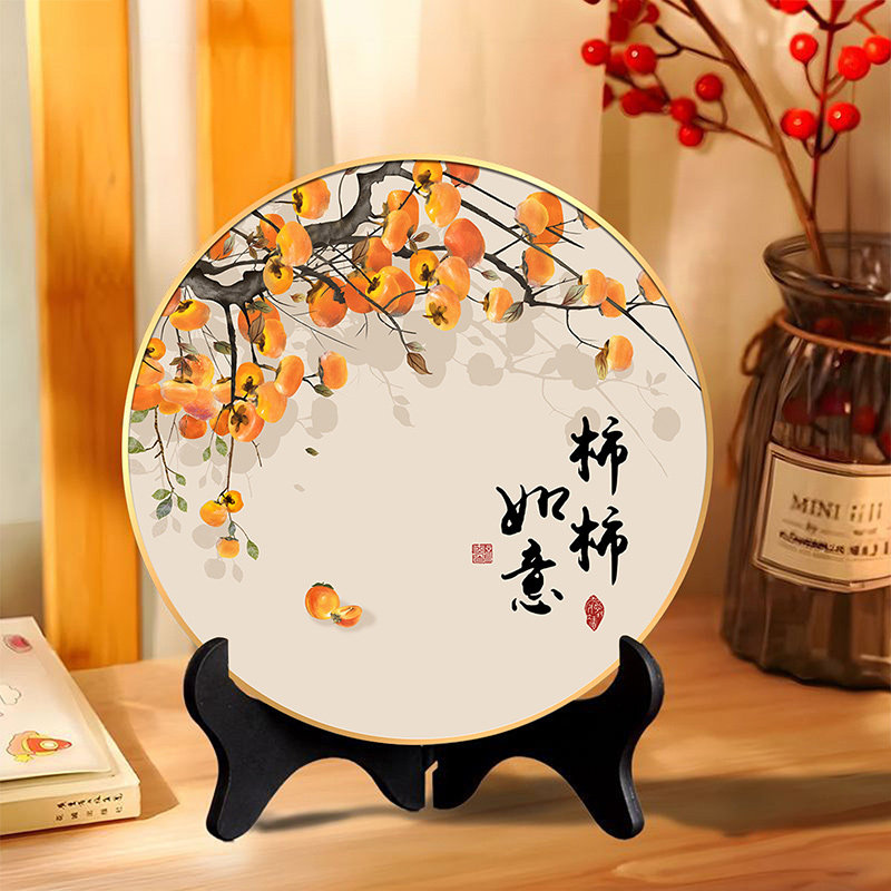 家和万事兴摆件圆形客厅桌面摆台寓意好新房装饰品高级感柜子摆画