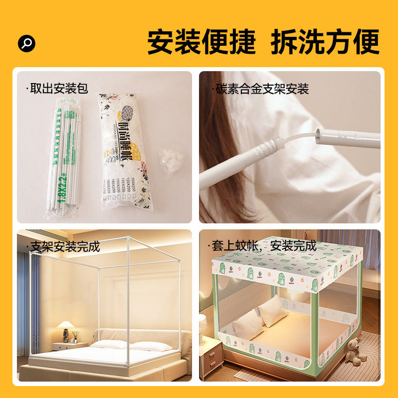 蚊帐家用卧室2026新款拼支架防摔儿童蒙古包宝宝帐防尘床笠款遮光
