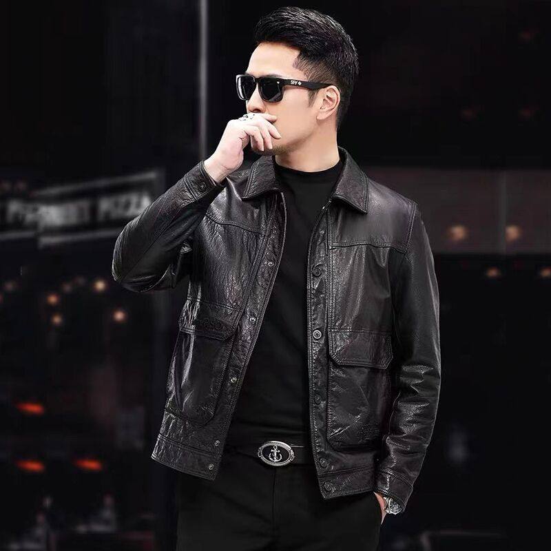 【雷总同款穿搭】迪柯尼高级感棕色系绵羊皮夹克1034工装皮衣外套