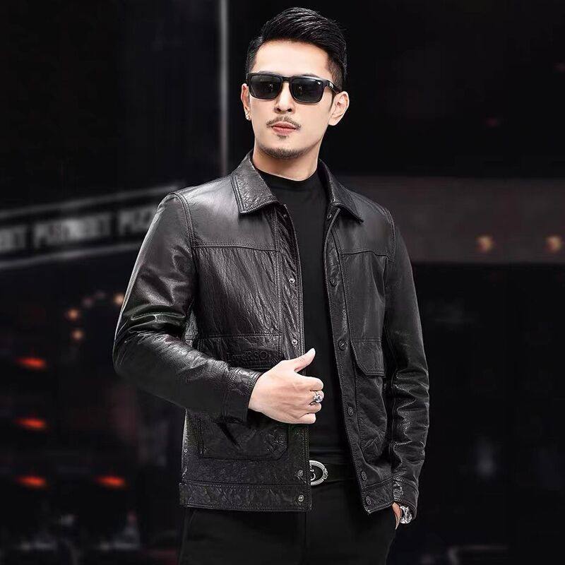 新款海宁绵羊真皮皮衣男短款翻领机车皮夹克韩版休闲修身外套秋冬