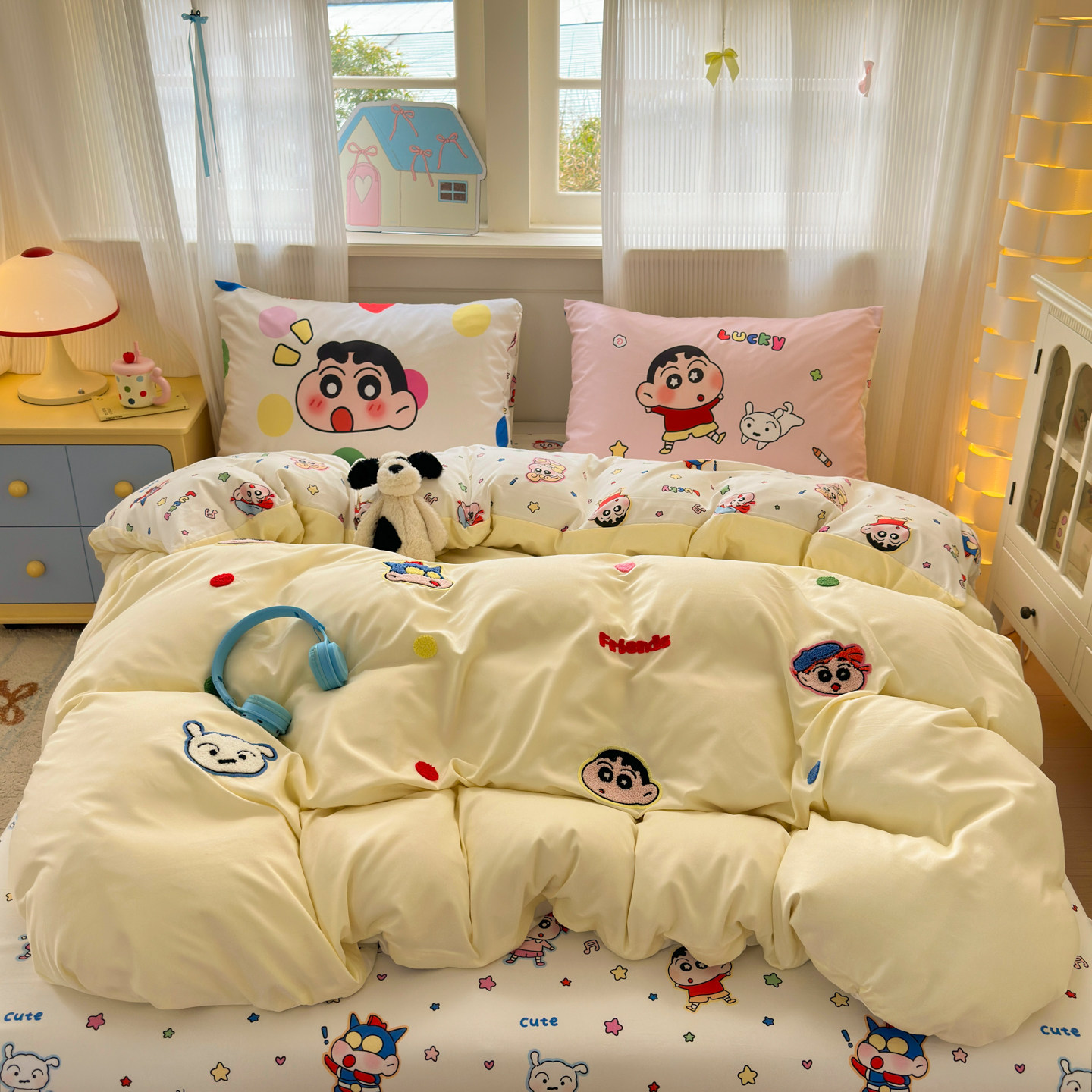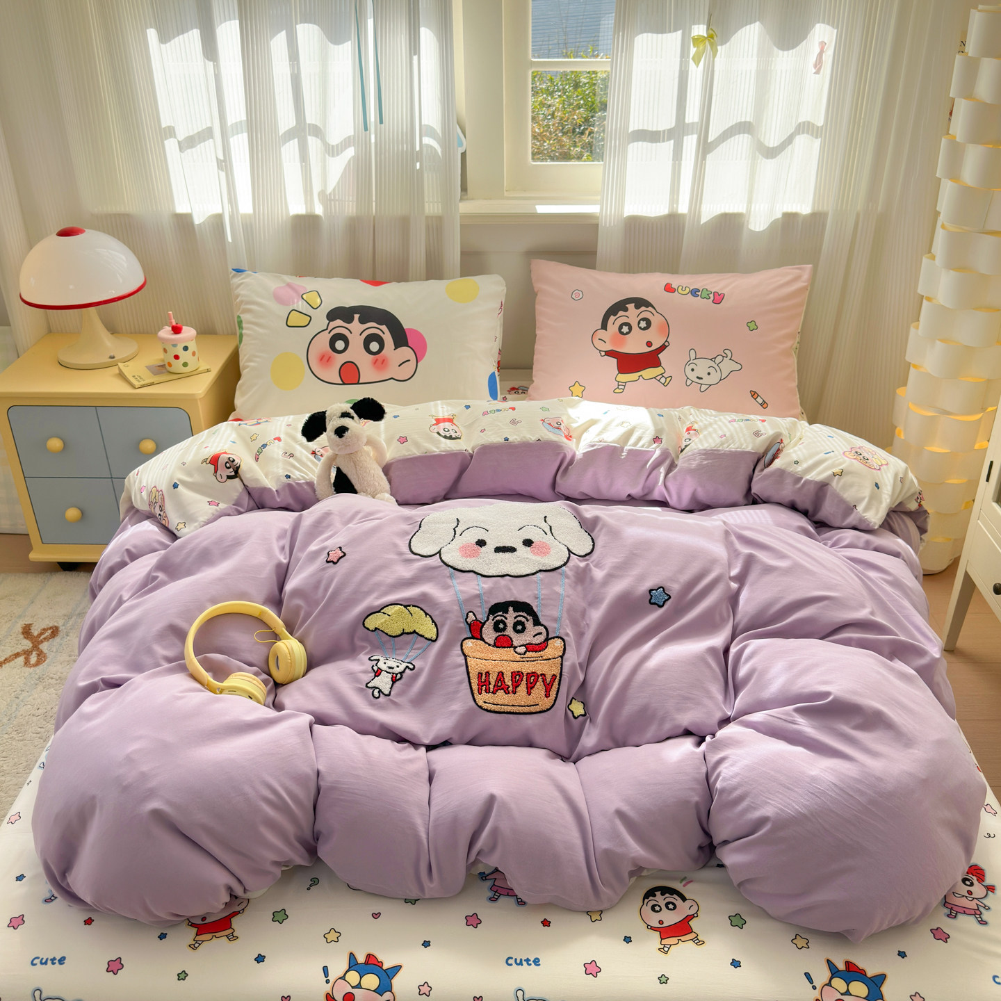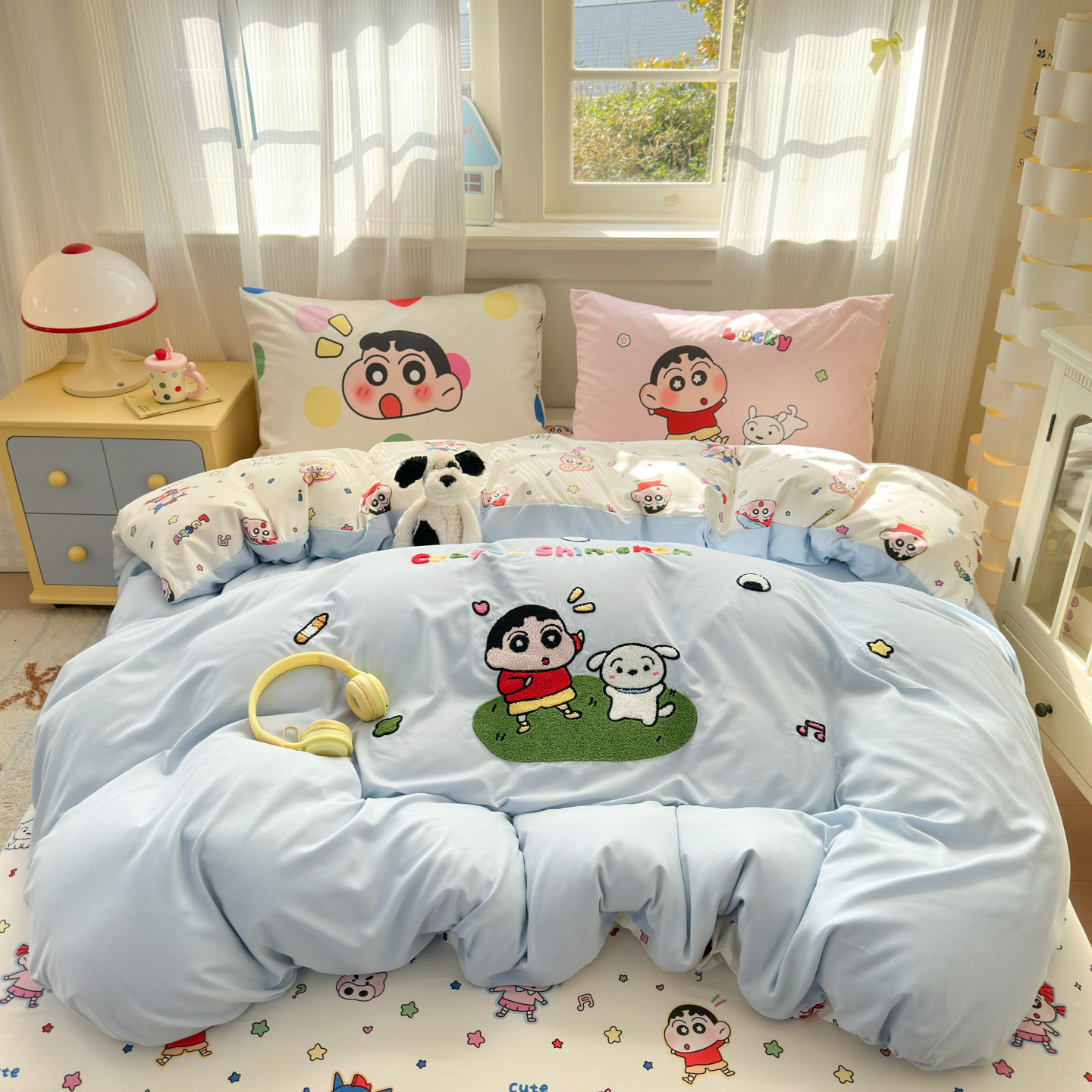 加厚A类蜡笔小新四件套纯棉全棉感儿童男女宿舍三件套被套床单笠