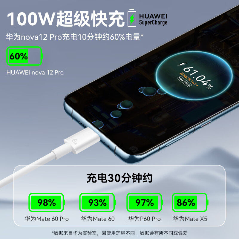 【官方正品】适用于华为充电器120W超级快充66W手机充电线头Mate60/30pro原40/nova5/6/7/8/9/106A数据线套装