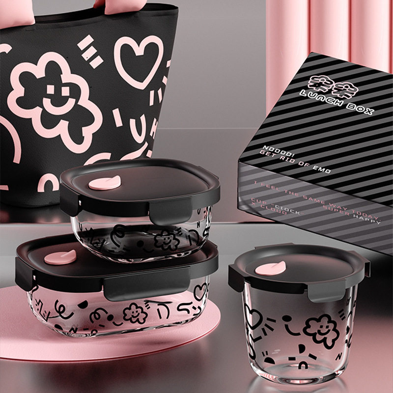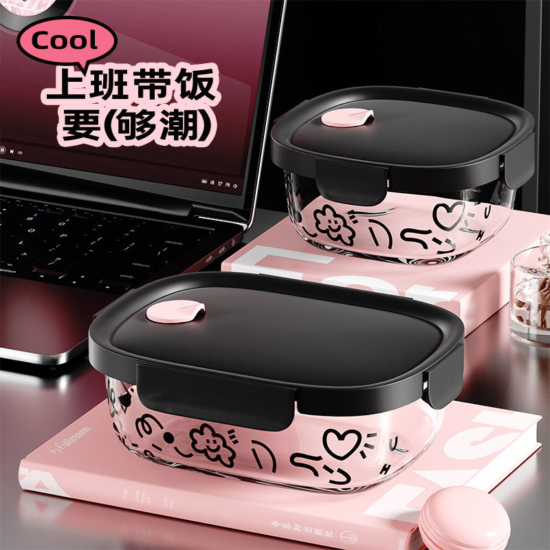 玻璃饭盒可微波炉加热带盖密封小便当碗餐盒食品级带饭汤盒保鲜盒