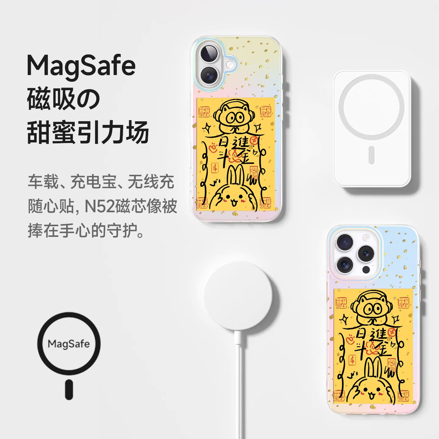 日进斗金乌萨奇适用苹果17promax手机壳新年款带支架iPhone16全包镜头13高级感小众14pro镭射磁吸15plus发财
