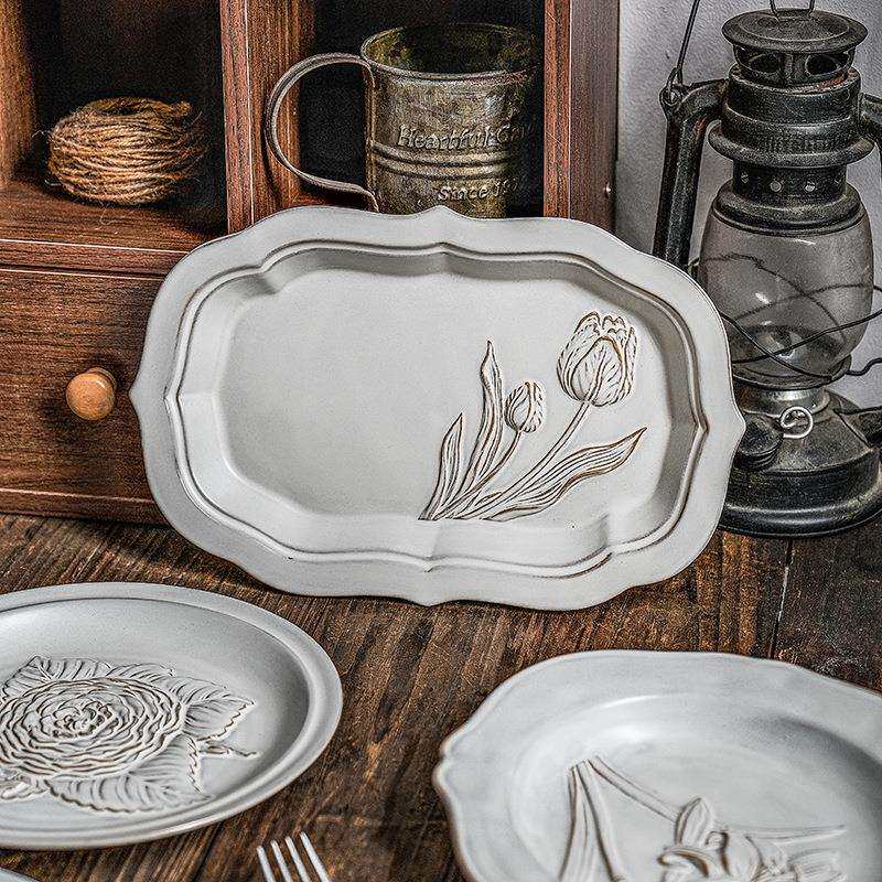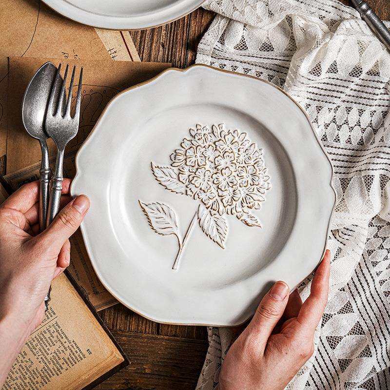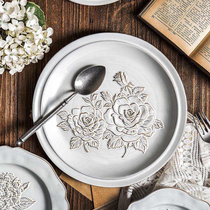 法式宫廷风复古浮雕圆盘甜品盘点心盘样板间装饰摆件西餐意面盘子